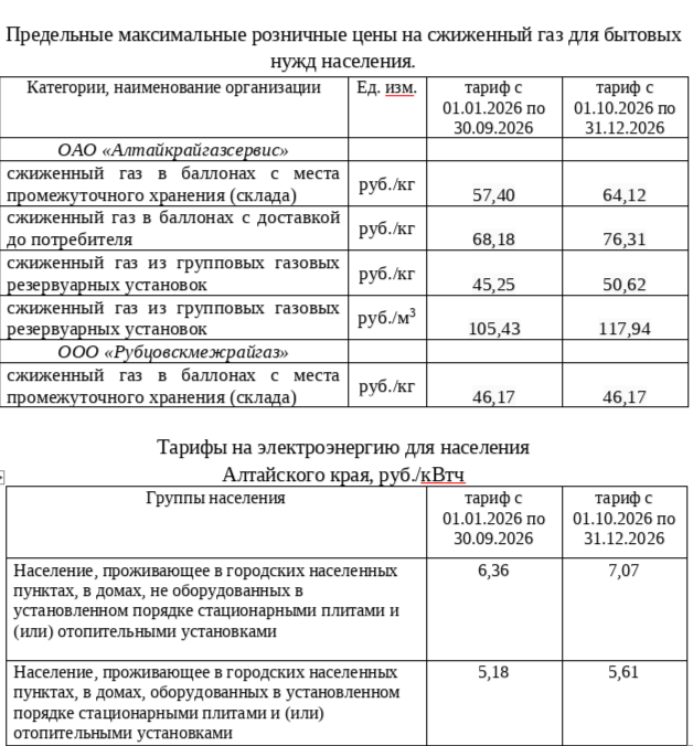 Предельный индекс изменения размера вносимой гражданами платы за коммунальные услуги, утвержденный Указом Губернатора Алтайского края от 15.12.2025 № 206, для города Рубцовска составляет с 01.01.2026 по 30.09.2026 - 1,7%, с 01.10.2026 по 31.12.2026 – 12,5%.