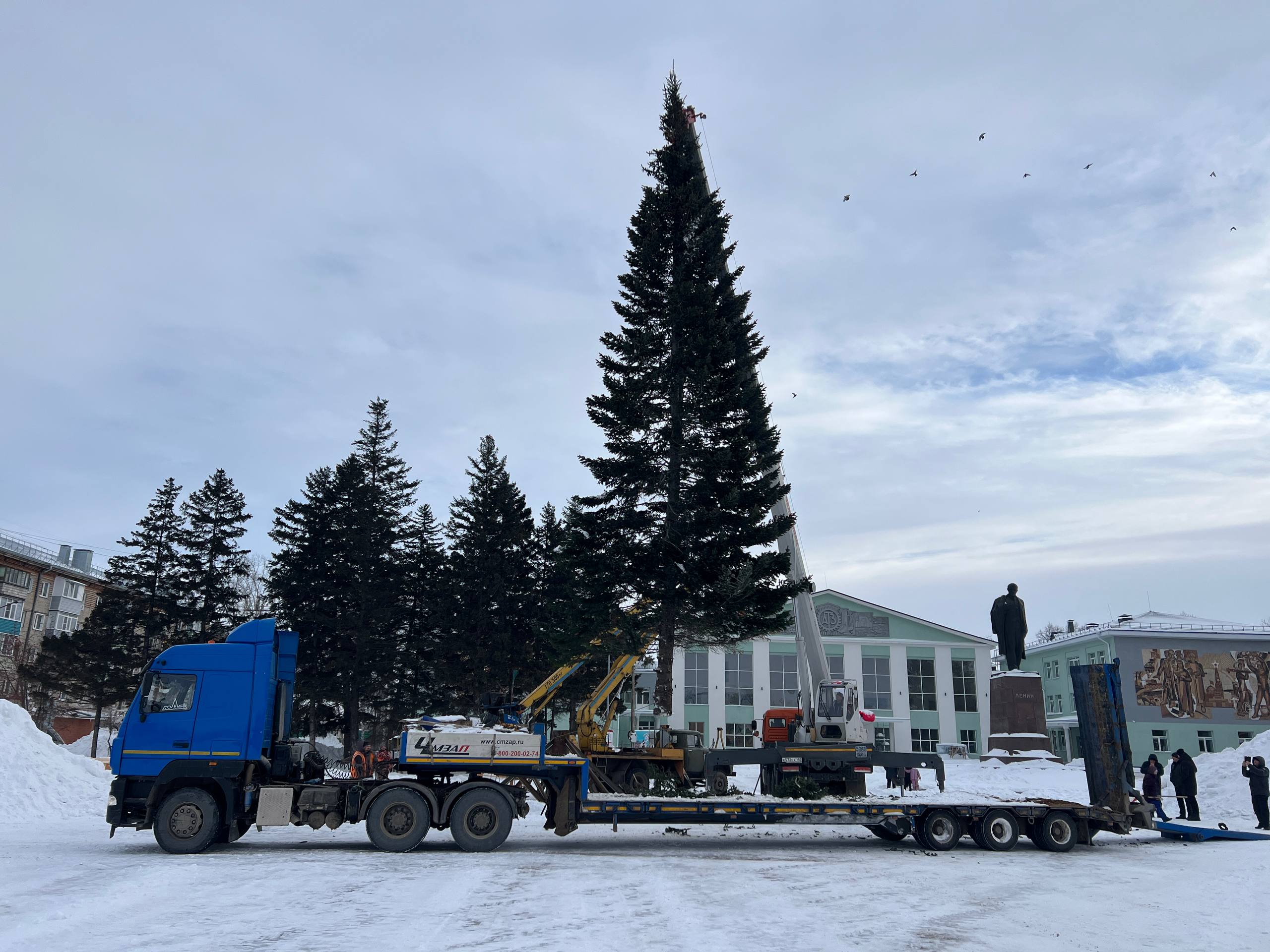 На этой неделе запланирована установка главной городской новогодней ёлки на площади имени Ленина.