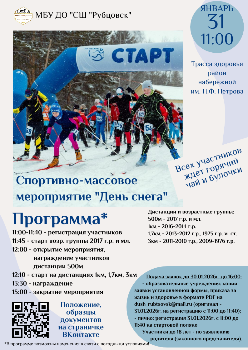 31 января на правом берегу р. Алей в районе набережной Н.Ф. Петрова состоится спортивное мероприятие — День снега.