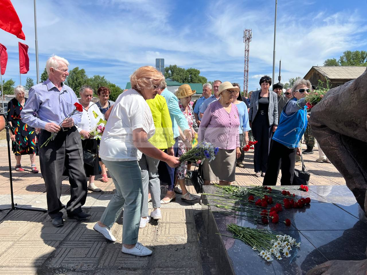 Присутствующие почтили память погибших минутой молчания, затем возложили живые цветы к Вечному огню и памятнику воинам-землякам.