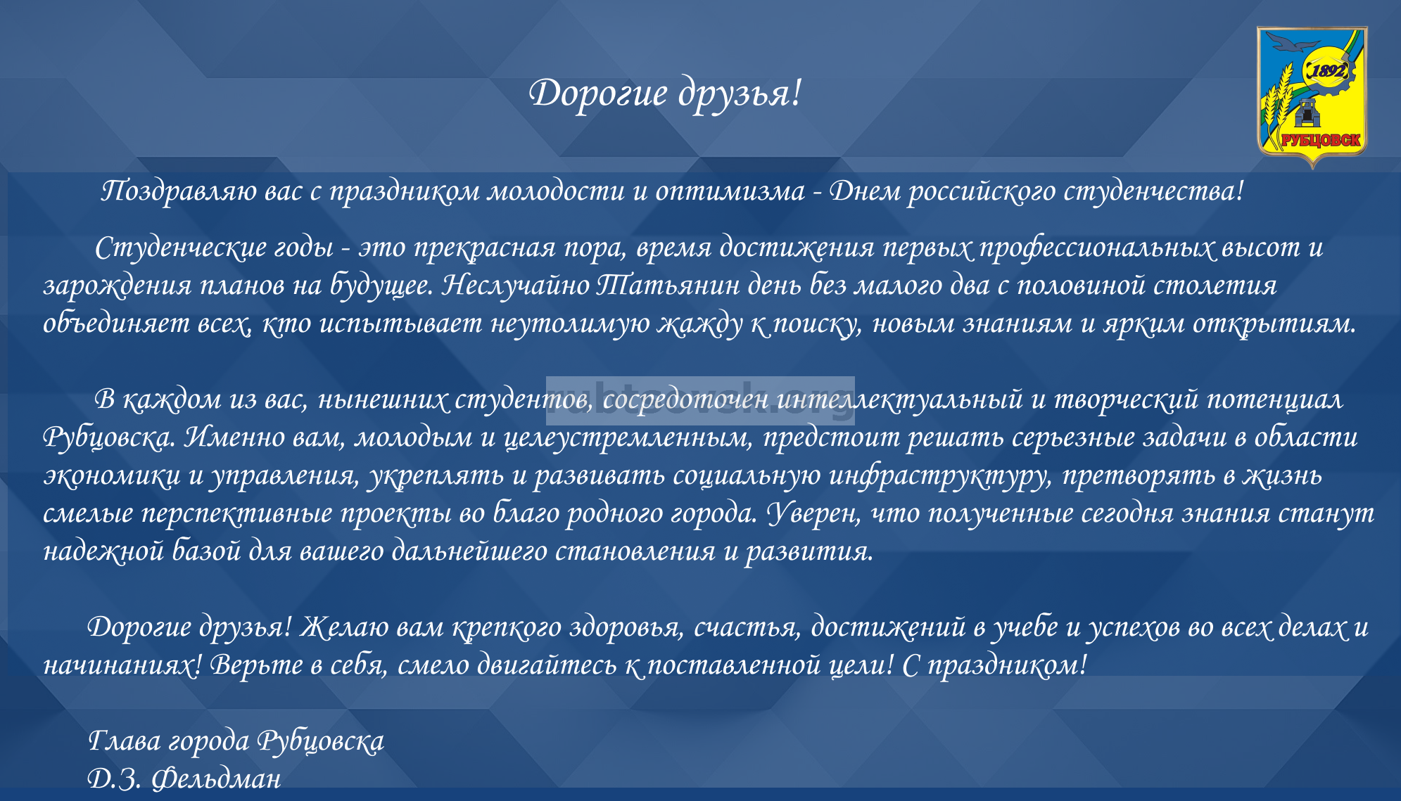 Сегодня все студенты отмечают свой праздник – День российского студенчества. В этот день сотрудники Госавтоинспекции совместно с представителем общественного совета МО МВД России «Рубцовский» пригласили студентов Рубцовского института (филиала) Алтайского государственного университета и принять участие в проведении профилактического мероприятия «Пристегнись, пассажир!».