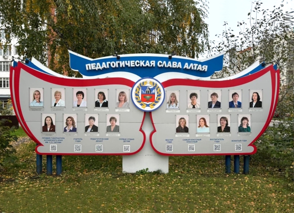 В преддверии Дня учителя в сквере Алтайского института развития образования имени А. М. Топорова открыли обновлённую Доску почёта «Педагогическая слава Алтая». На ней разместили фотопортреты лучших педагогов Алтайского края — победителей региональных конкурсов профессионального мастерства 2025 года. Среди отмеченных педагогов — талантливые представители из Рубцовска: