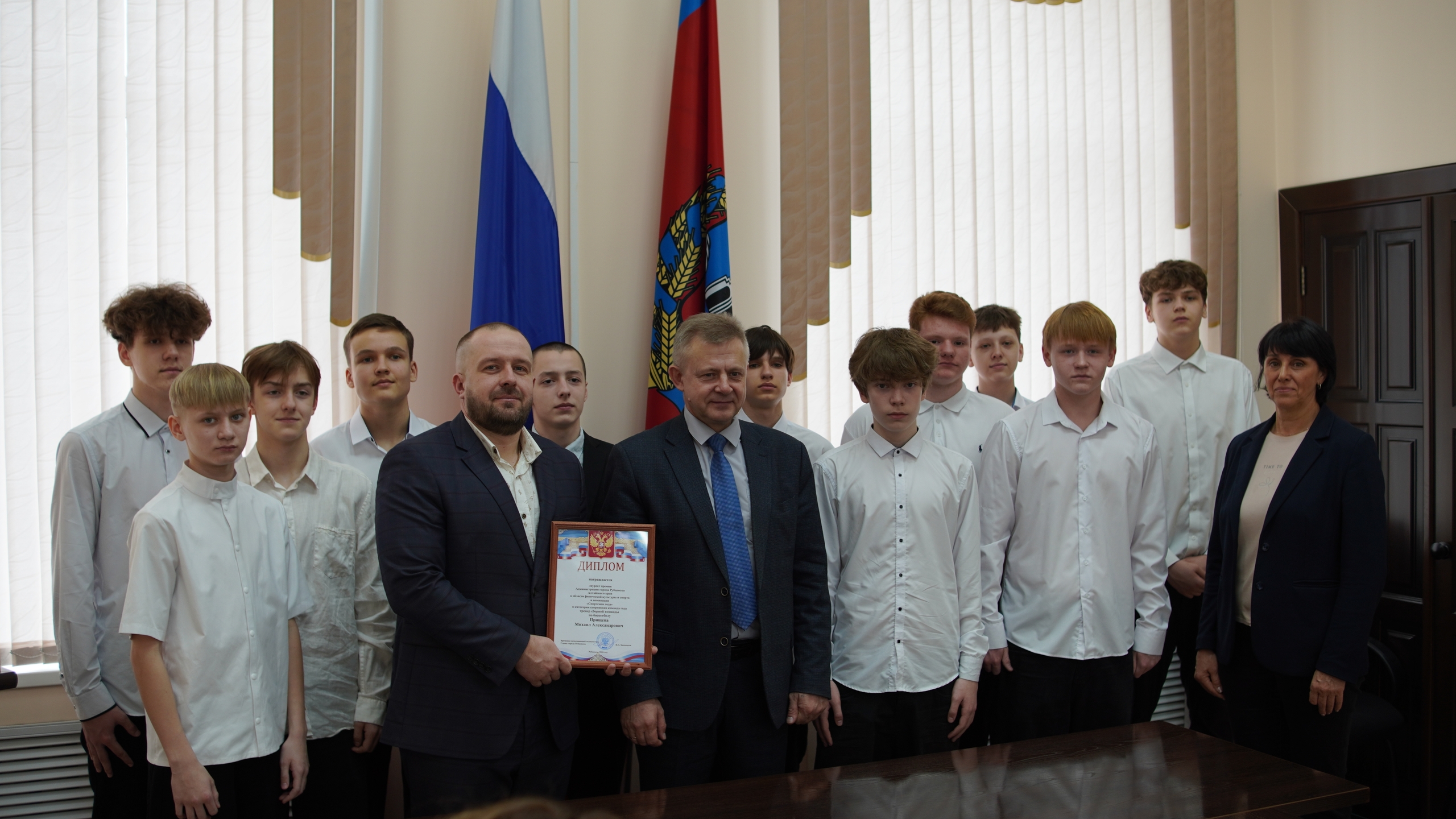 Сборная команда по баскетболу, тренер Михаил Прищепа. В составе: Аким Чесноков, Богдан Чесноков, Максим Барышников, Тимофей Лысов, Семён Путинцев, Евгений Рева, Евгений Булденко, Фёдор Небольсин, Артём Погребков, Вадим Васильев, Никита Уханов, Макар Михайлюк, Борис Белогуров.