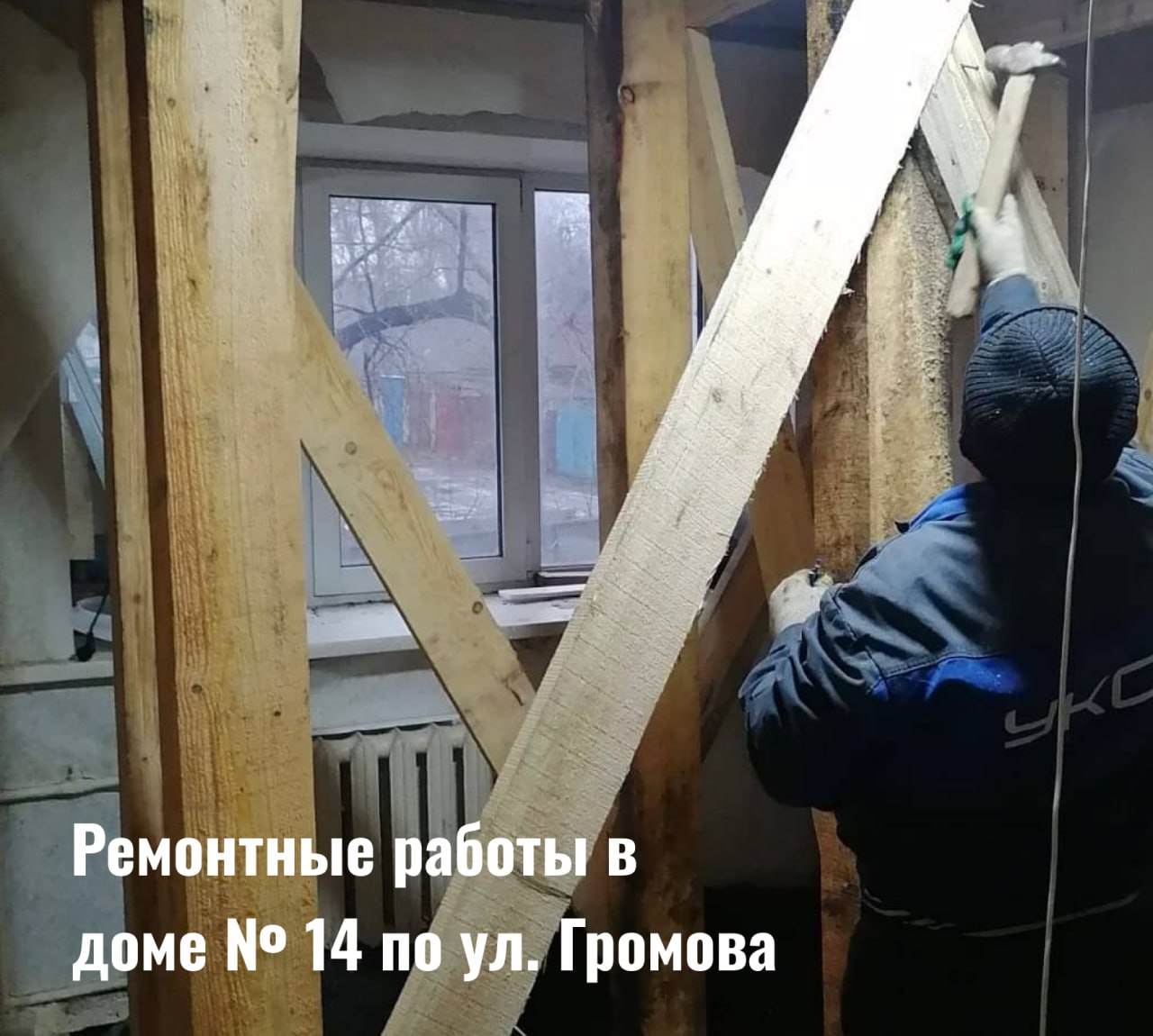 В многоквартирном доме по улице Громова, 14 продолжались работы по ремонту.