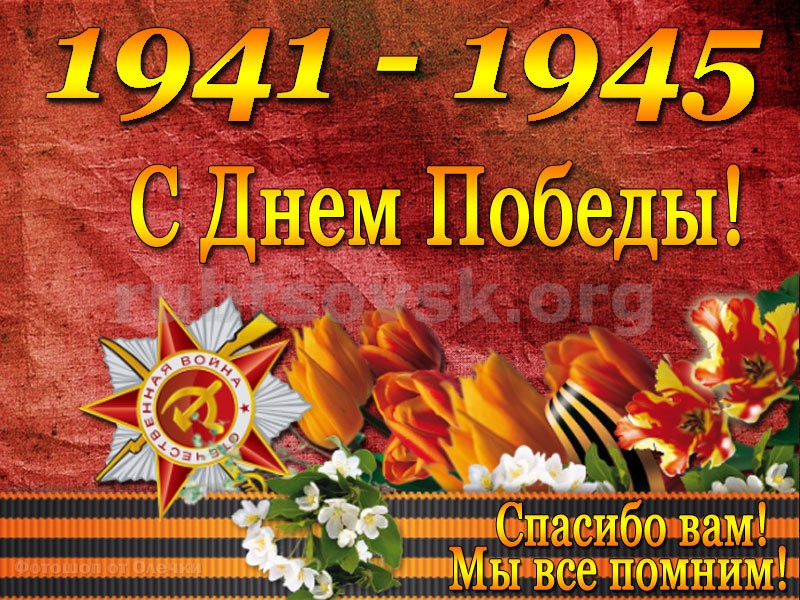 От всей души поздравляю вас с Днем Великой Победы! 9 Мая – особый праздник. День Победы день вошёл в историю яркими картинами всеобщего ликования, громом артиллерийских залпов, возвестивших миру об окончании Великой Отечественной войны, о победе советского народа над фашистской Германией.