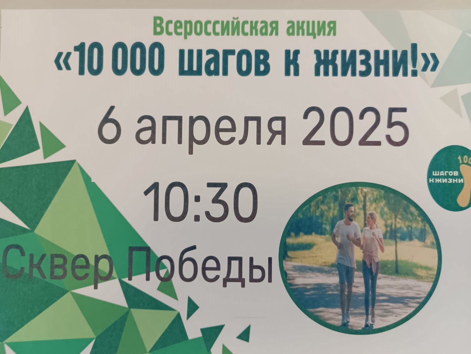 6 апреля в сквере Победы, расположенном по ул. Алтайской, состоится спортивно-массовое мероприятие «10 000 шагов к жизни», посвященное знаменательной дате – 80-й годовщине Победы в Великой Отечественной войне Программа мероприятия: