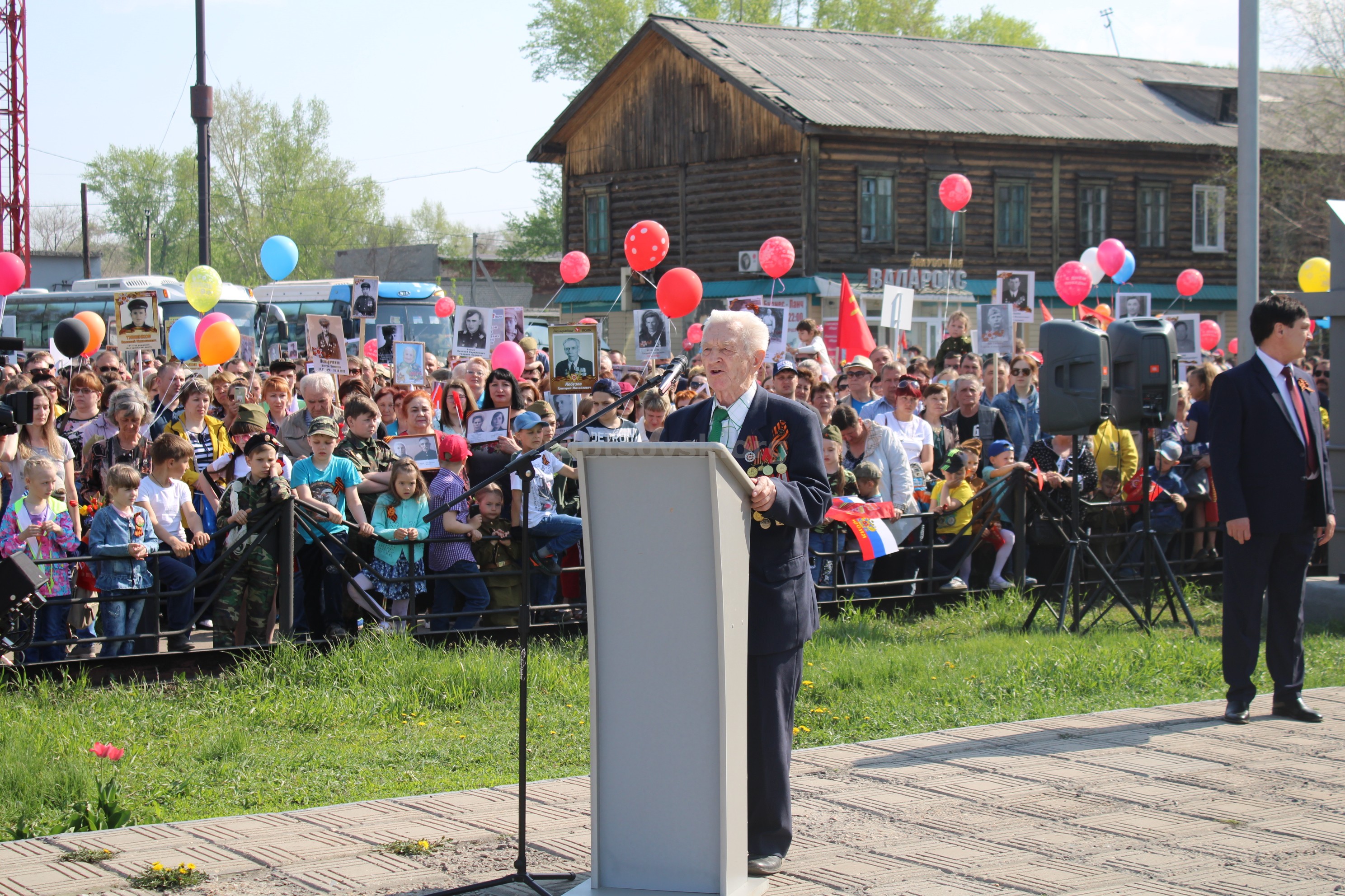 К моменту начала программы на площадь стеклись и участники «Бессмертного полка», и колонн предприятий и организаций Рубцовска.