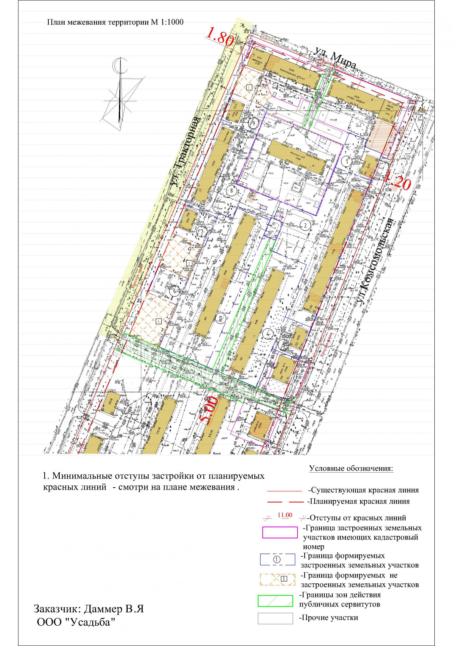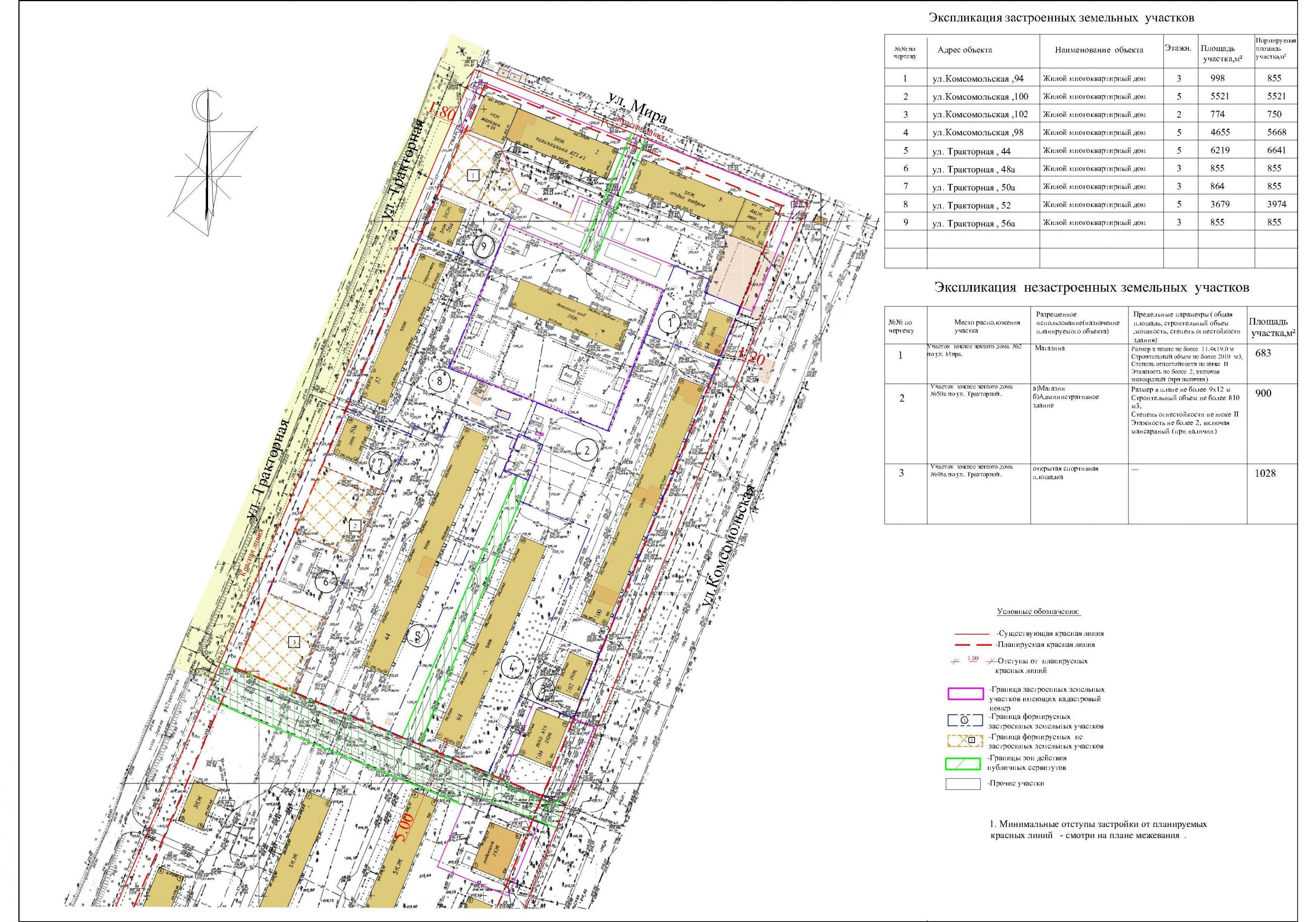 Согласно постановлению администрации города от 25.02.2010 № 689 решено подготовить проект планировки и межевания застроенной территории в границах пр. Ленина, пер. Садового, ул. Комсомольской, пер. Улежникова.