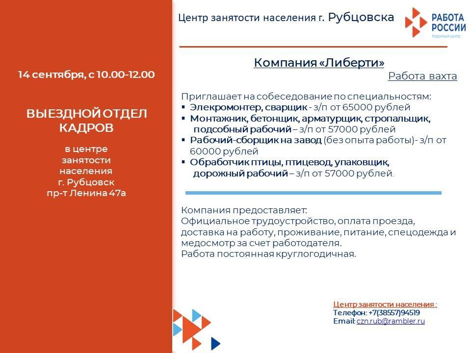 Подробную информацию о вакансиях, о времени проведения видеособеседования можно получить в ЦЗН г. Рубцовска по телефону: 9-45-19 или по адресу: г.Рубцовск, пр.Ленина, 47А, каб. 8