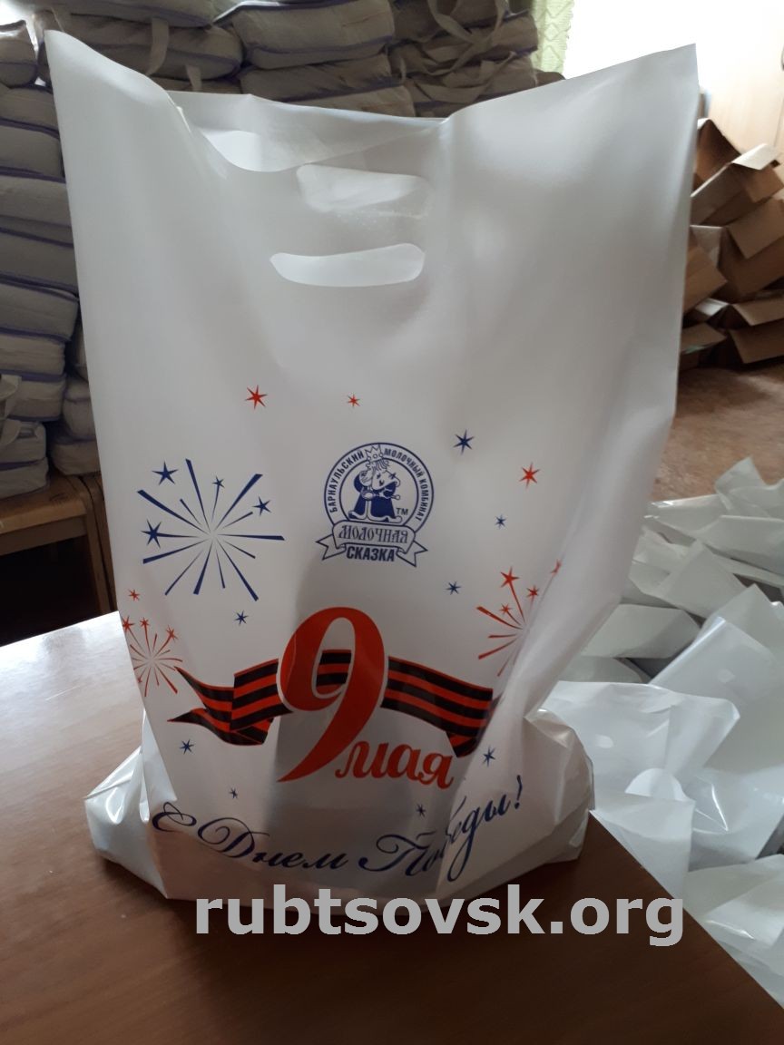 В состав каждого подарка от Губернатора Алтайского края входит набор постельного белья. К подарку прилагается именной конверт, в котором находятся поздравительные открытки, подписанные Губернатором Алтайского края А.Б. Карлиным, Главой города Рубцовска Д.З. Фельдманом, депутатом Государственной Думы В.В. Зобневым и поздравление от партии «Единая Россия». В этом же конверте находится купон фирмы «Новэкс» и Георгиевская Лента. В отдельных пакетах упакованы подарки от Администрации города Рубцовска и фирмы «Молочная сказка».