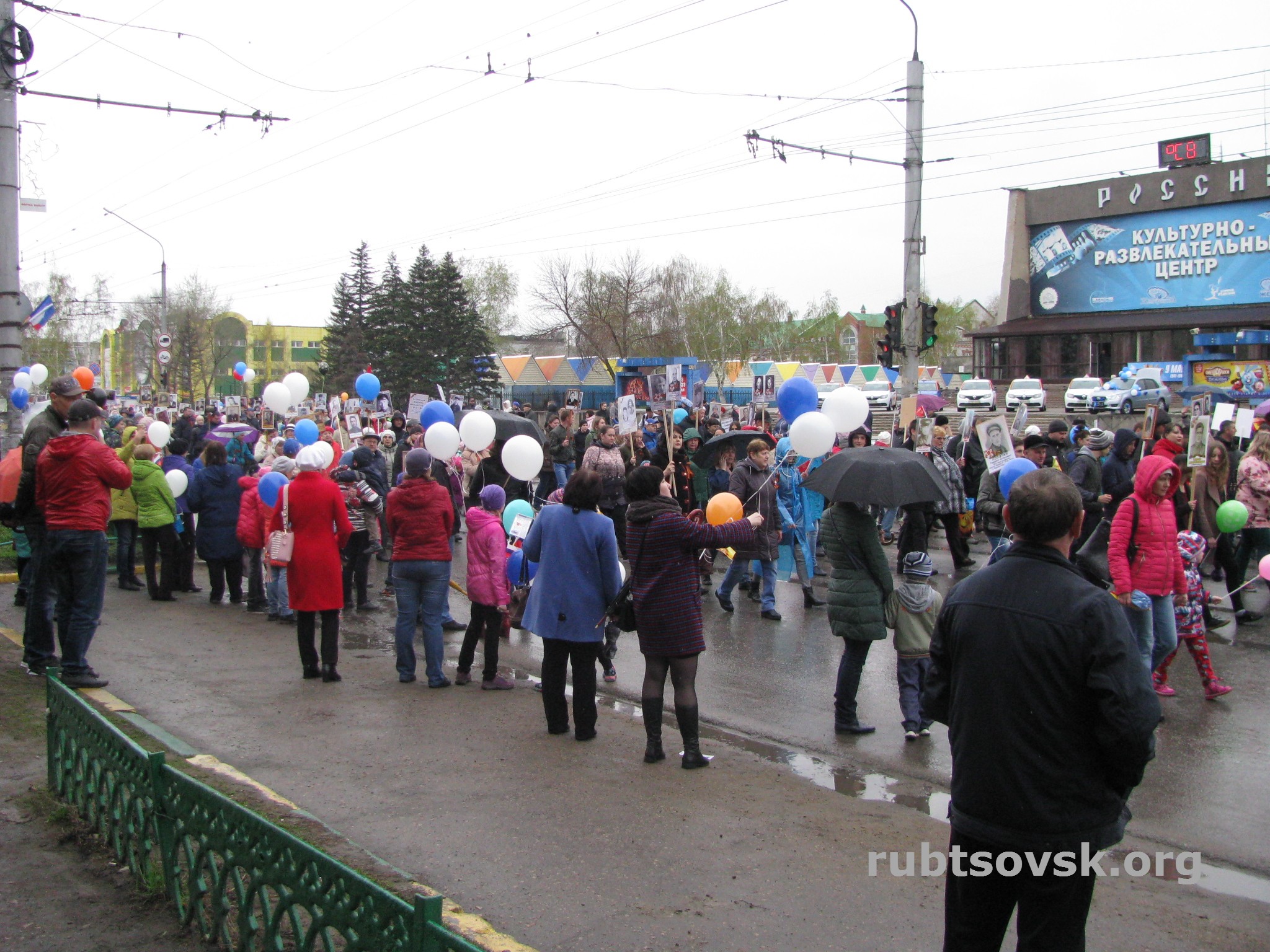 Затем присутствовавшие на митинге рубцовчане во главе с участниками «Бессмертного полка» направились на главную городскую площадь, на которой и проходили дальнейшие мероприятия в честь Дня Победы. По дороге к площади к «Бессмертному полку» присоединялись и просто горожане семьями, и целые колонны предприятий и организаций.