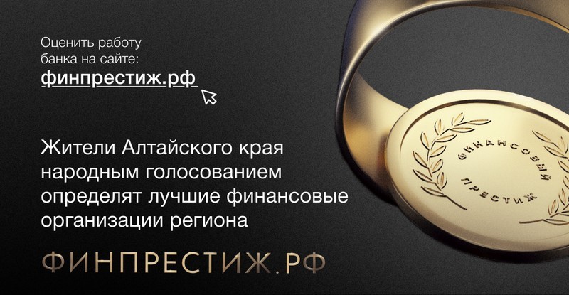 В рамках Стратегии повышения финансовой грамотности и формирования финансовой культуры до 2030 года и государственной программы Алтайского края «Повышение уровня финансовой грамотности населения в Алтайском крае» организовано народное голосование за лучшие финансовые организации Алтайского края в рамках проведения XI Межрегиональной премии «Финансовый престиж».