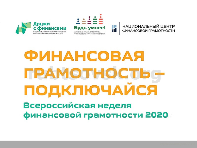 24 октября в Алтайском крае в рамках проекта Минфина России «Содействие повышению уровня финансовой грамотности населения и развитию финансового образования в Российской Федерации» и государственной программы Алтайского края «Повышение уровня финансовой грамотности населения в Алтайском крае» стартовала Всероссийская неделя финансовой грамотности.
