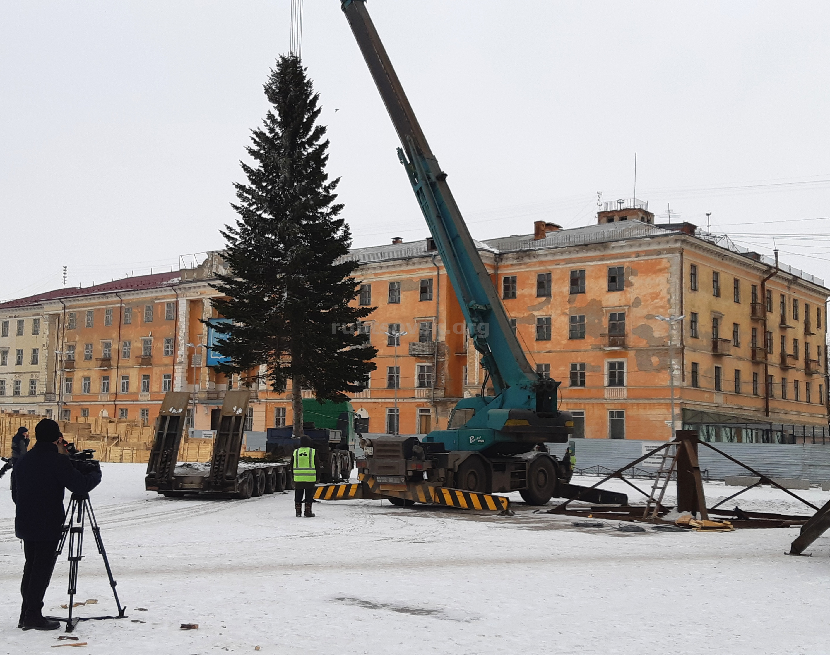 Именно такую елку и привезли сегодня. Помимо установки новогоднего символа на площади им. Ленина идет строительство снежного городка.