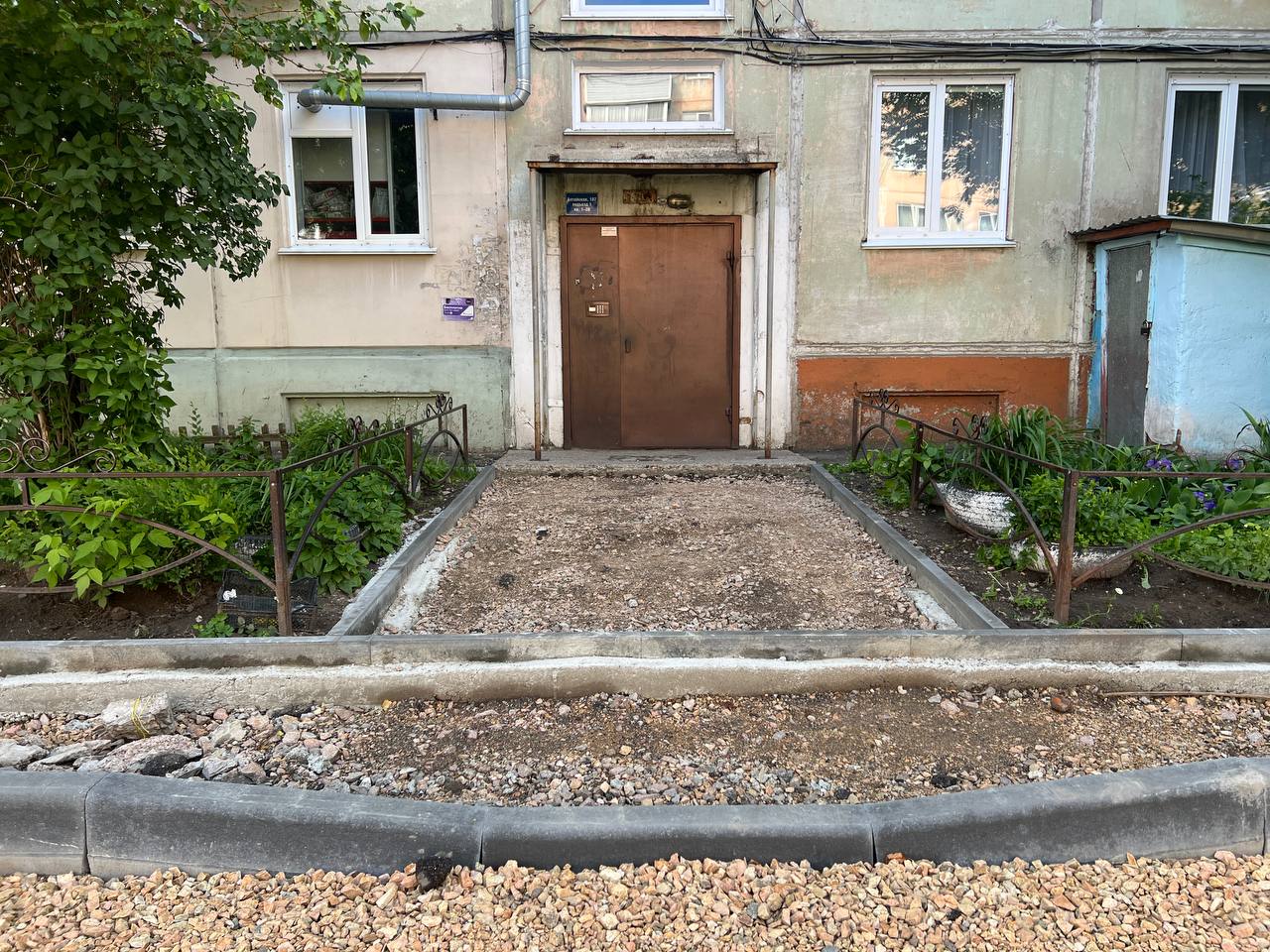 Во дворе по ул. Комсомольской, 143 подрядчик ведёт установку бордюрного камня, а по ул. Пролетарской, 238 начаты подготовительные работ.