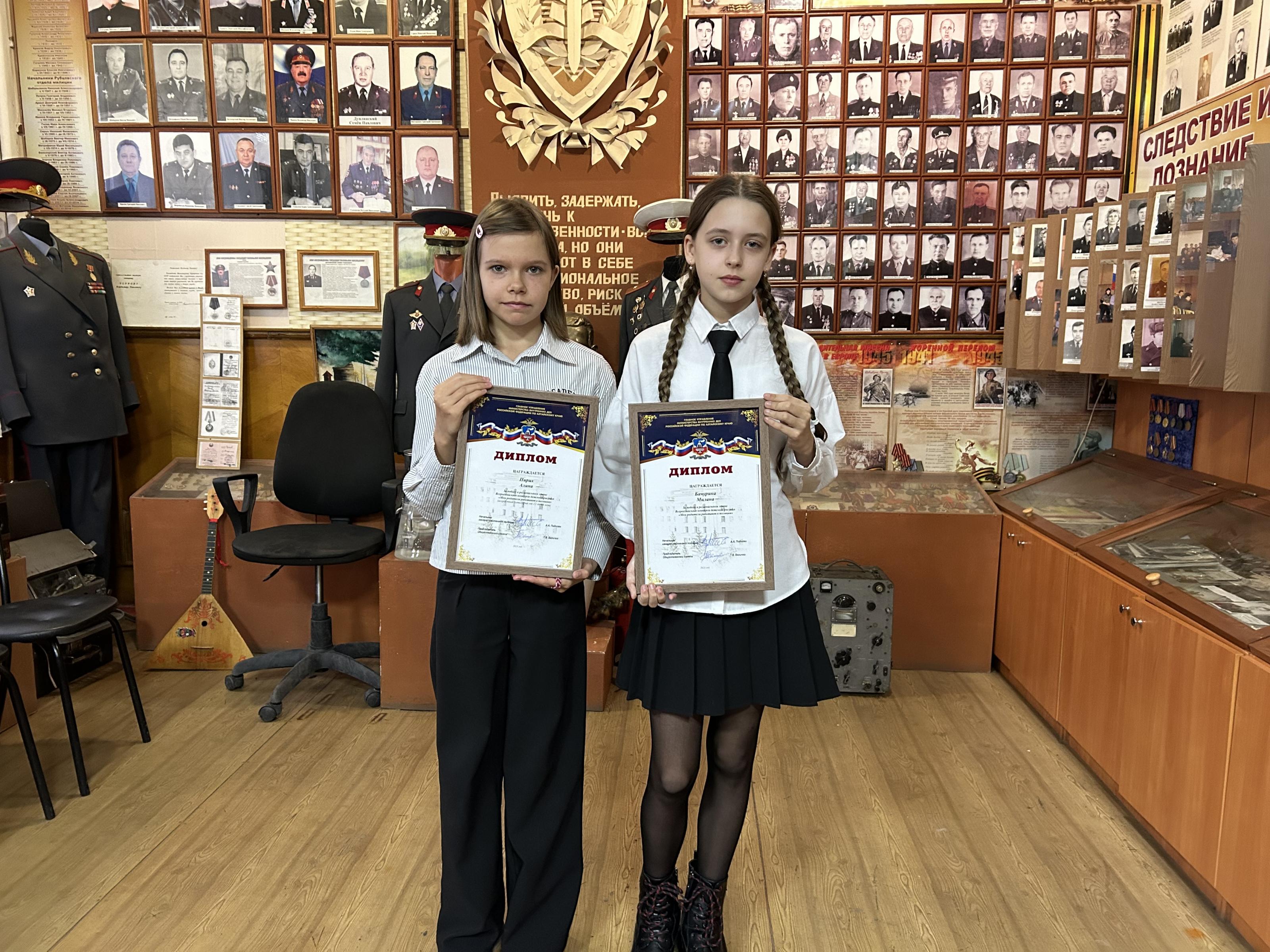 В торжественной обстановке начальник МО МВД России "Рубцовский" Василий Дёмин вручил Алине Пирих и Милане Бачуриной дипломы победителей краевого конкурса «Мои родители работают в полиции».