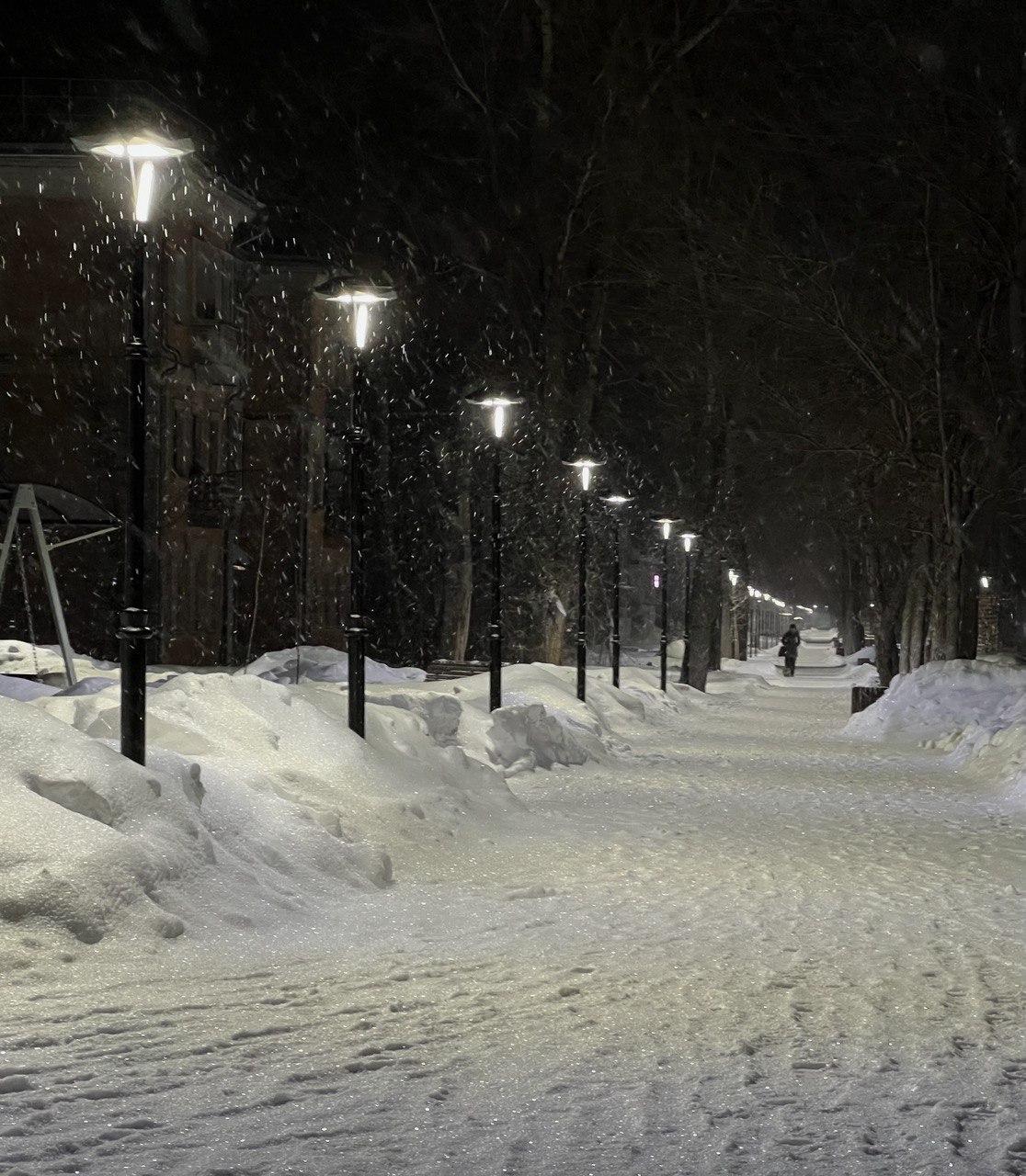 в ночную смену на дорогах города работают 8 машин, тротуары чистят 2 единицы техники;