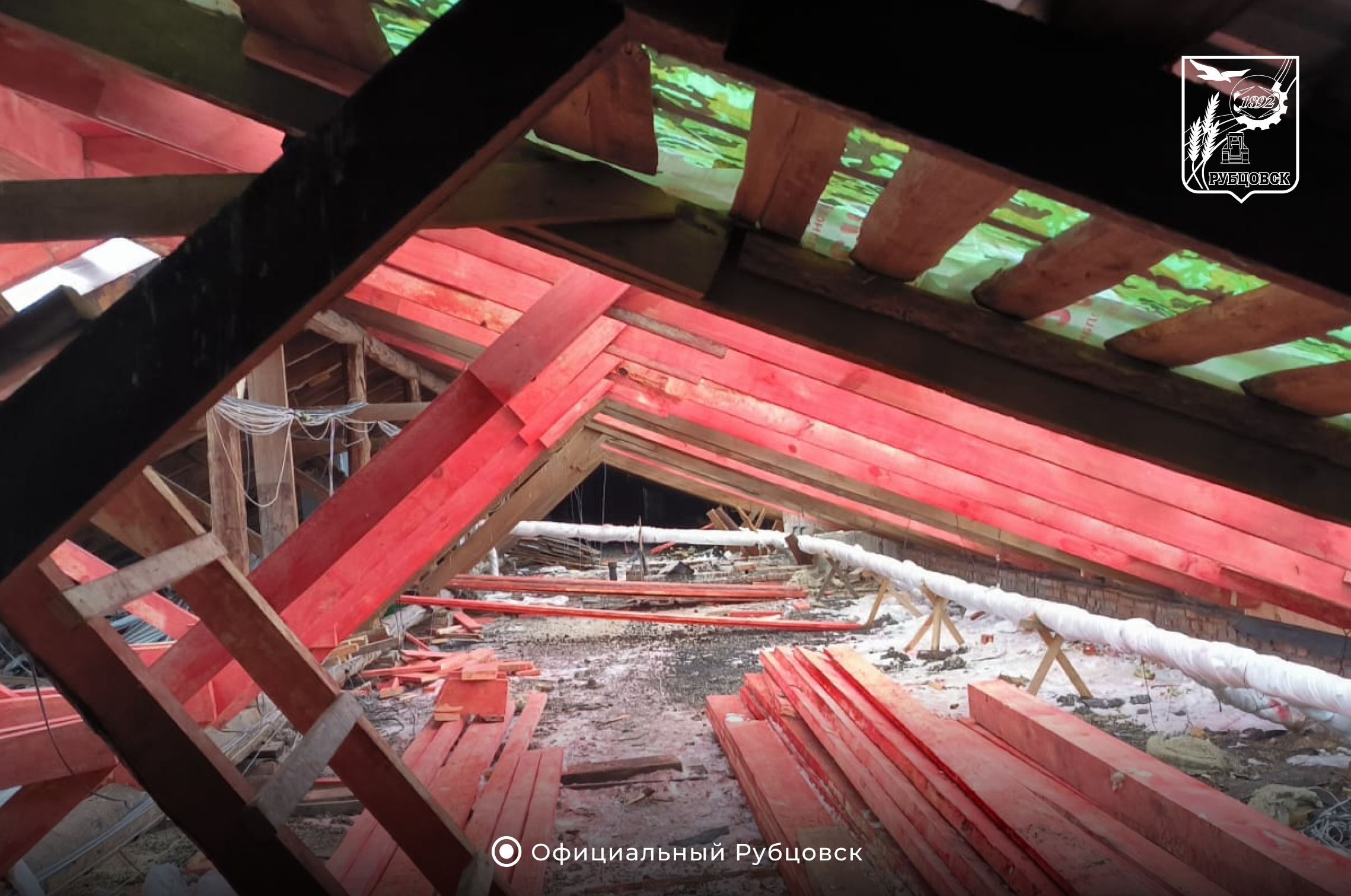 С начала декабря специалисты провели утепление верхнего розлива, демонтировали обрешетку и стропилы кровли крыши. Сейчас ведут монтаж новых стропил, обрешетки и мауэрлатов.