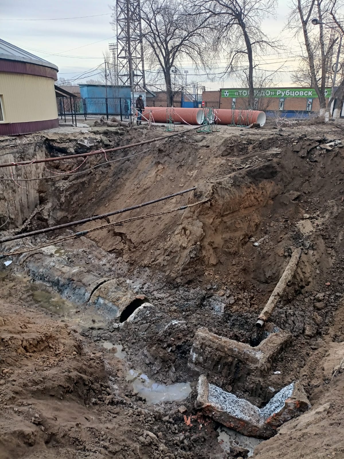 - Сейчас на участке уже выкопана траншея глубиной более 6 метров, специалистам МУП «Рубцовский водоканал» предстоит заменить частично разрушенную железобетонную трубу на пластиковые гофрированные трубы диаметром 1000 мм. Перед этим необходимо подготовить основание для новых труб. - рассказал Олег Обухович.