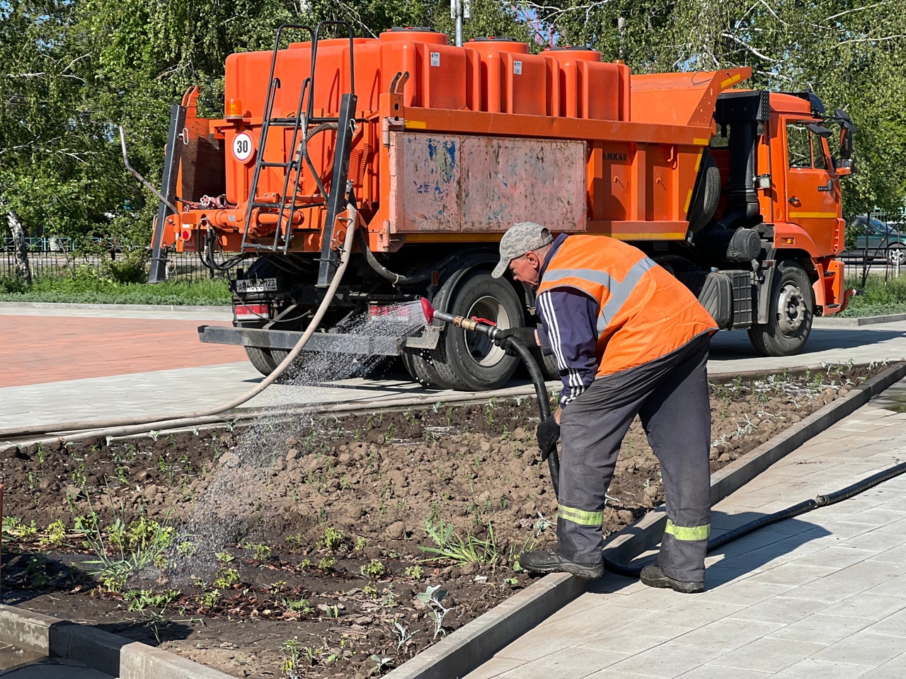 ямочный ремонт машиной БЦМ - ул. Комсомольской; полив цветов;