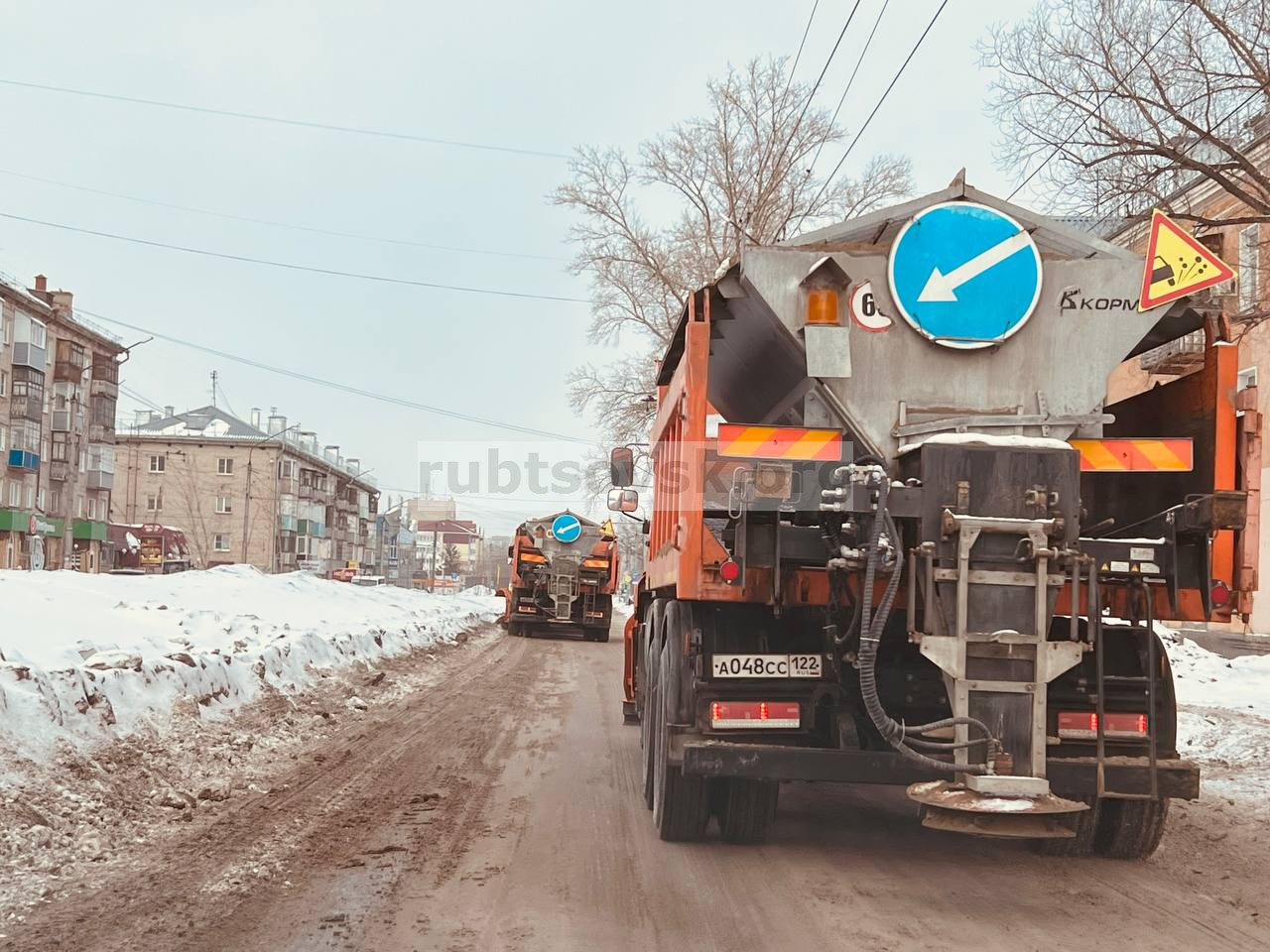 МУП «АвтоСпецТехника» продолжает работы по содержанию улично-дорожной сети города Рубцовска, вчера, 13 февраля: