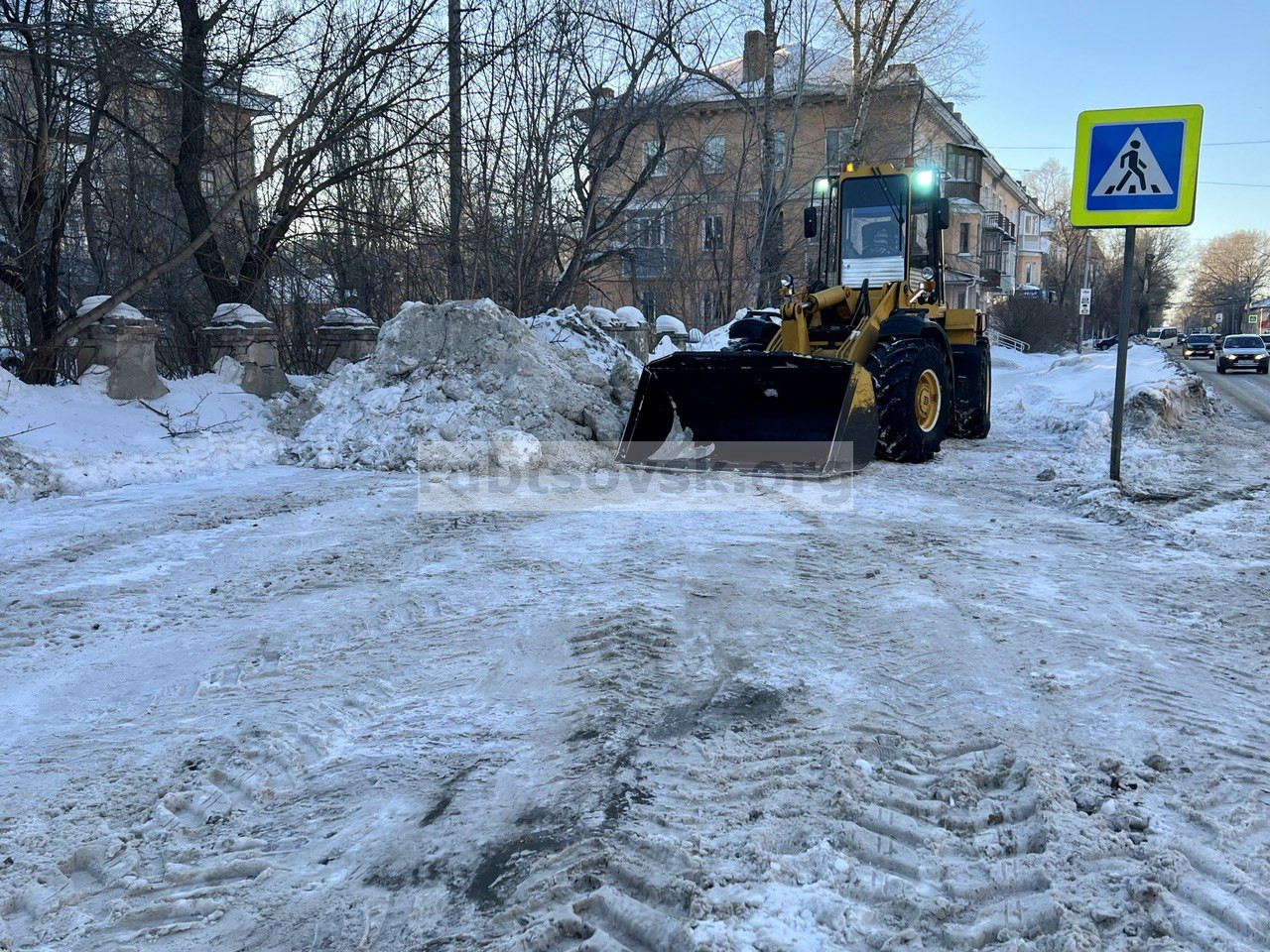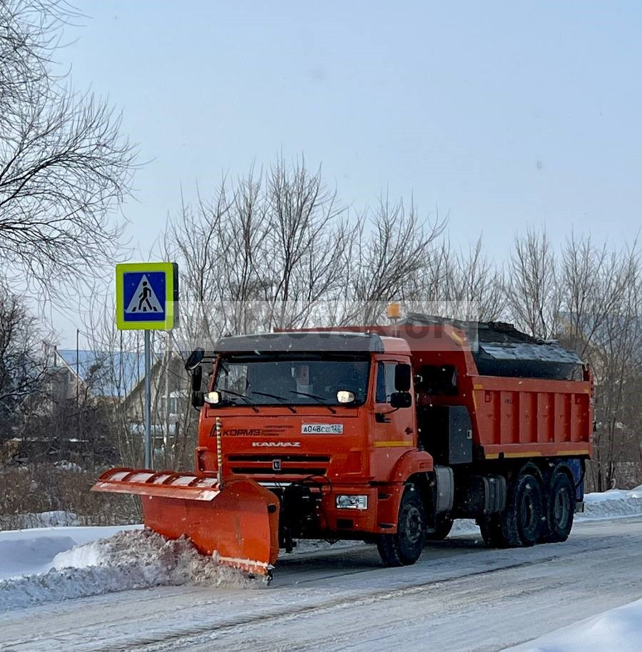 Сегодня работники МУП «АвтоСпецТехники» ведут работы по вывозу снега с дорожного полотна на маршрутах движения общественного транспорта, пр. Ленина, ул. Карла Маркса, пешеходных тротуаров, подходов к социально значимым объектам, выполняют расчистку остановок общественного транспорта от наледи трактором, оснащенным навесным оборудованием для скалывания льда. Дворники вручную очищают от снега городские улицы, посыпают песком подходы к пешеходным переходам и к остановкам общественного транспорта.