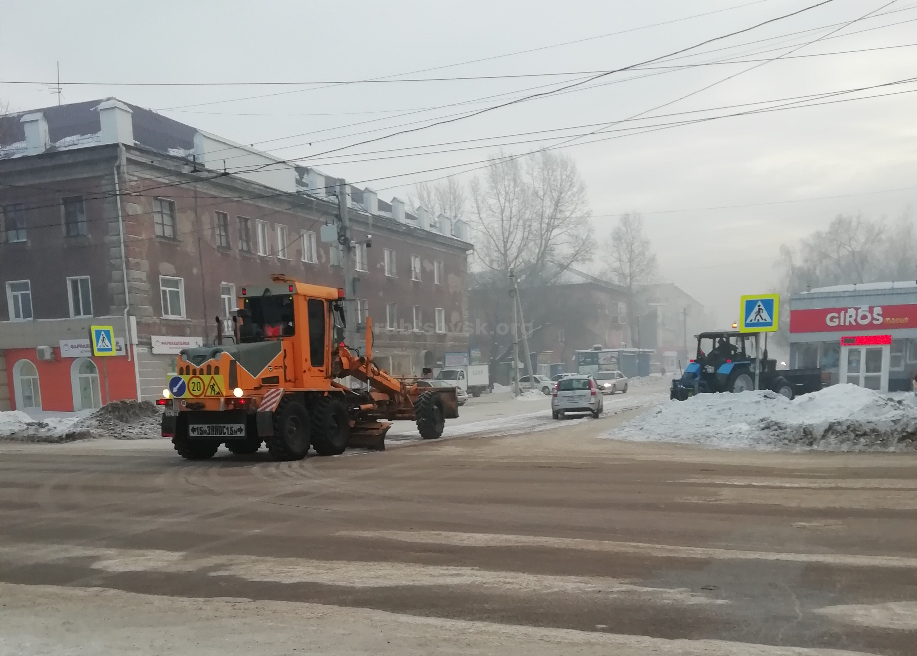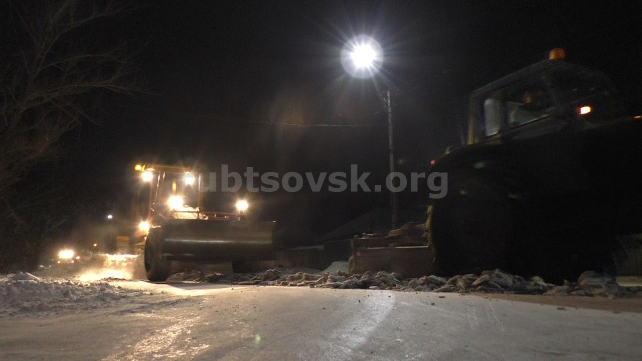 Минувшей ночью на очистке улиц Рубцовска от снега работали 12 единиц техники.