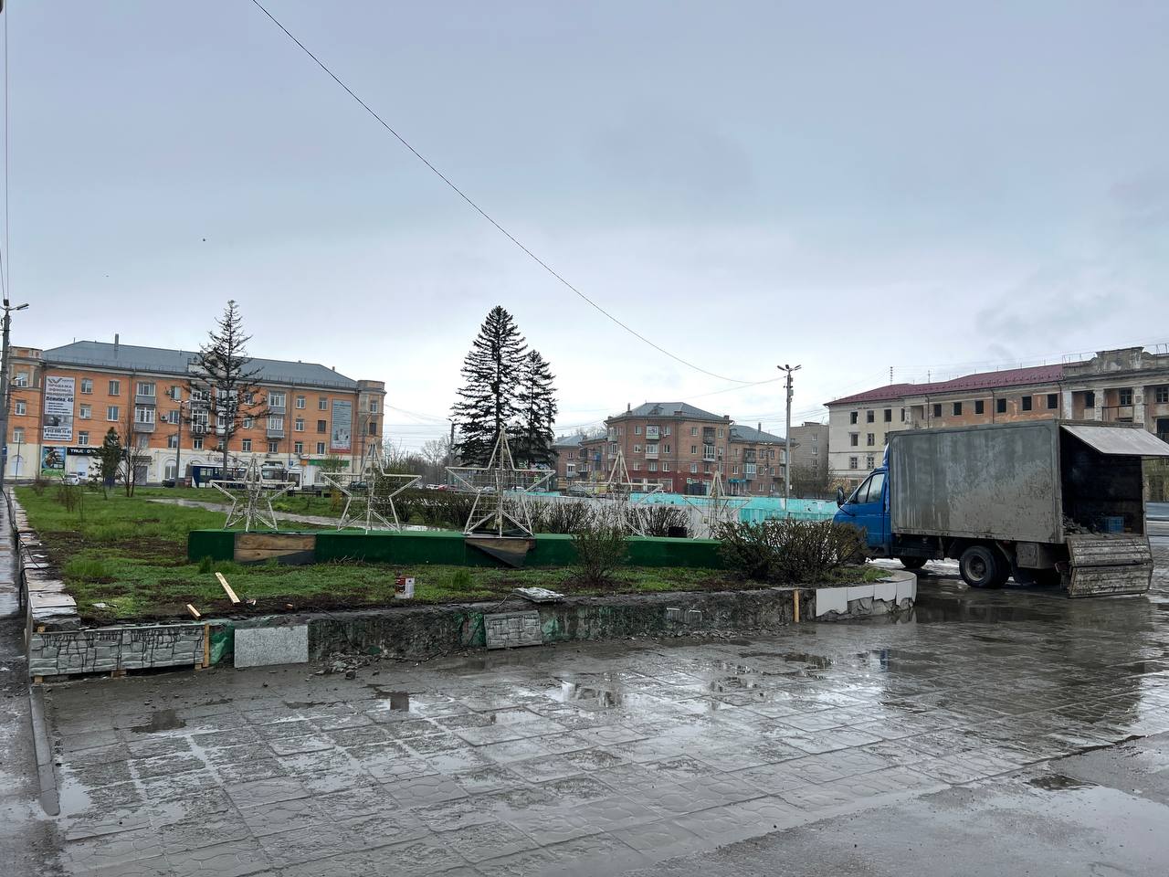 В преддверии празднования Дня Великой Победы коммунальщики убирали улицы в разных районах города, особое внимание было уделено привокзальной площади, а также красили и ремонтировали перильные ограждения на ул. Комсомольской.
