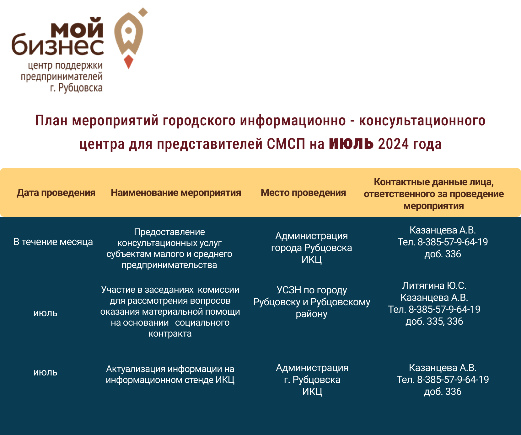 24 мая в 14:00 в большом зале Администрации Рубцовска по адресу: г. Рубцовск, пр-кт Ленина, 130, каб. № 8, состоится праздничный концерт, посвященный празднованию Дня российского предпринимательства.