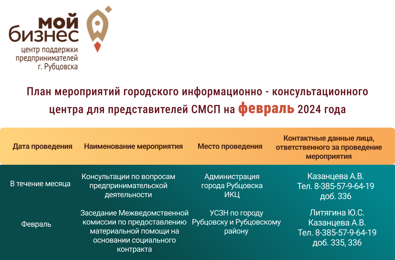 Страница отдела по развитию предпринимательства и рыночной инфраструктуры на сайте Администрации города Рубцовска