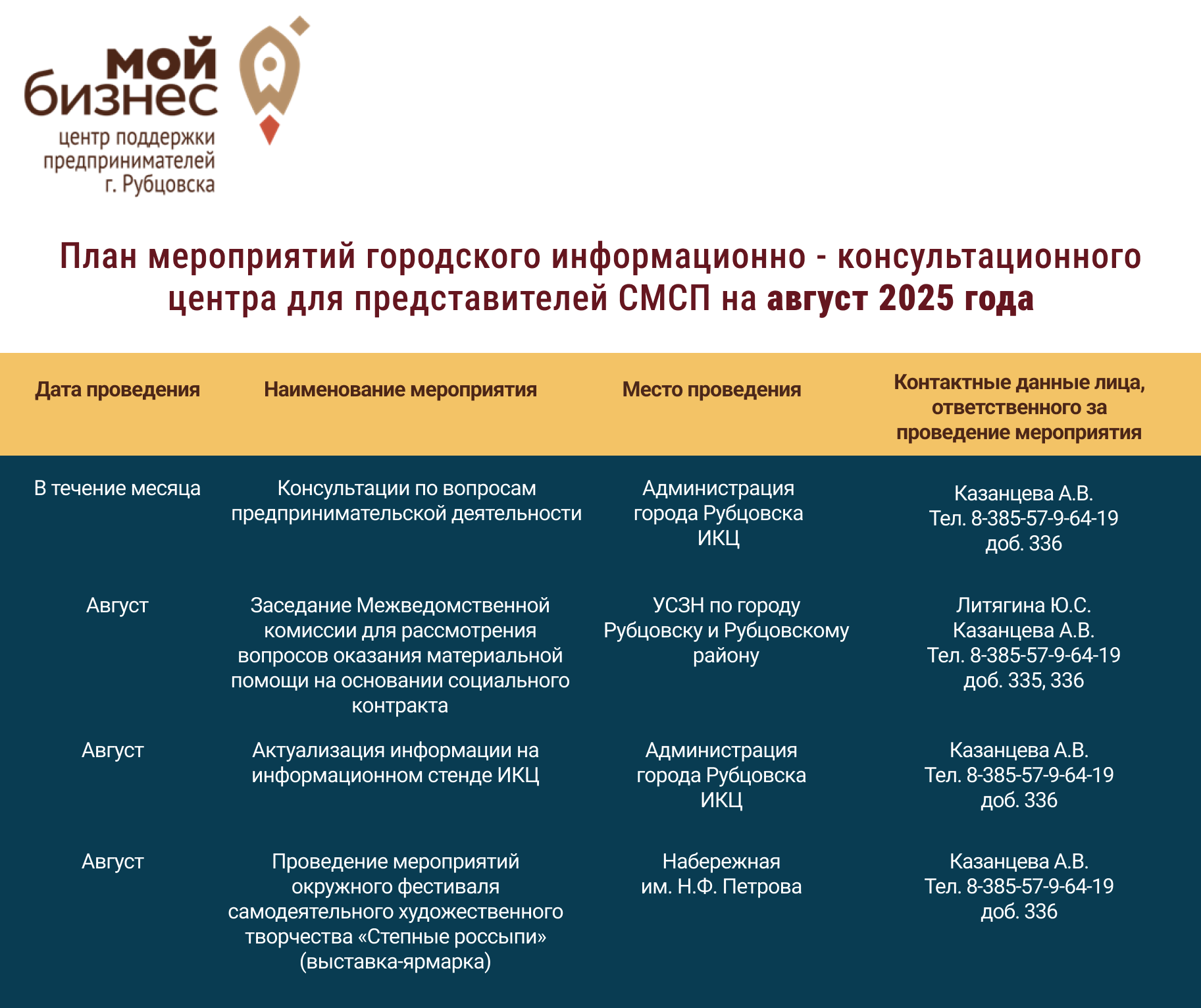 Страница отдела по развитию предпринимательства и рыночной инфраструктуры на сайте Администрации города Рубцовска