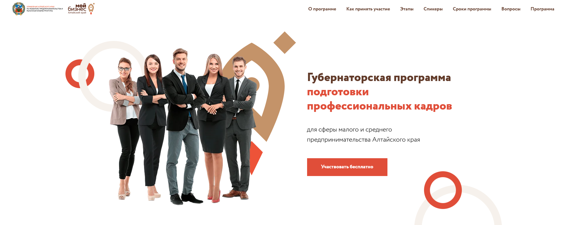 Губернаторская программа подготовки профессиональных кадров для сферы малого и среднего бизнеса Алтайского края – это обучающий проект Правительства Алтайского края, реализацией которого занимается региональный центр «Мой бизнес» совместно с центром «Бизнес-школа» Алтайского филиала РАНХиГС по поручению Председателя Правительства Алтайского края, Губернатора Алтайского края Виктора Томенко.