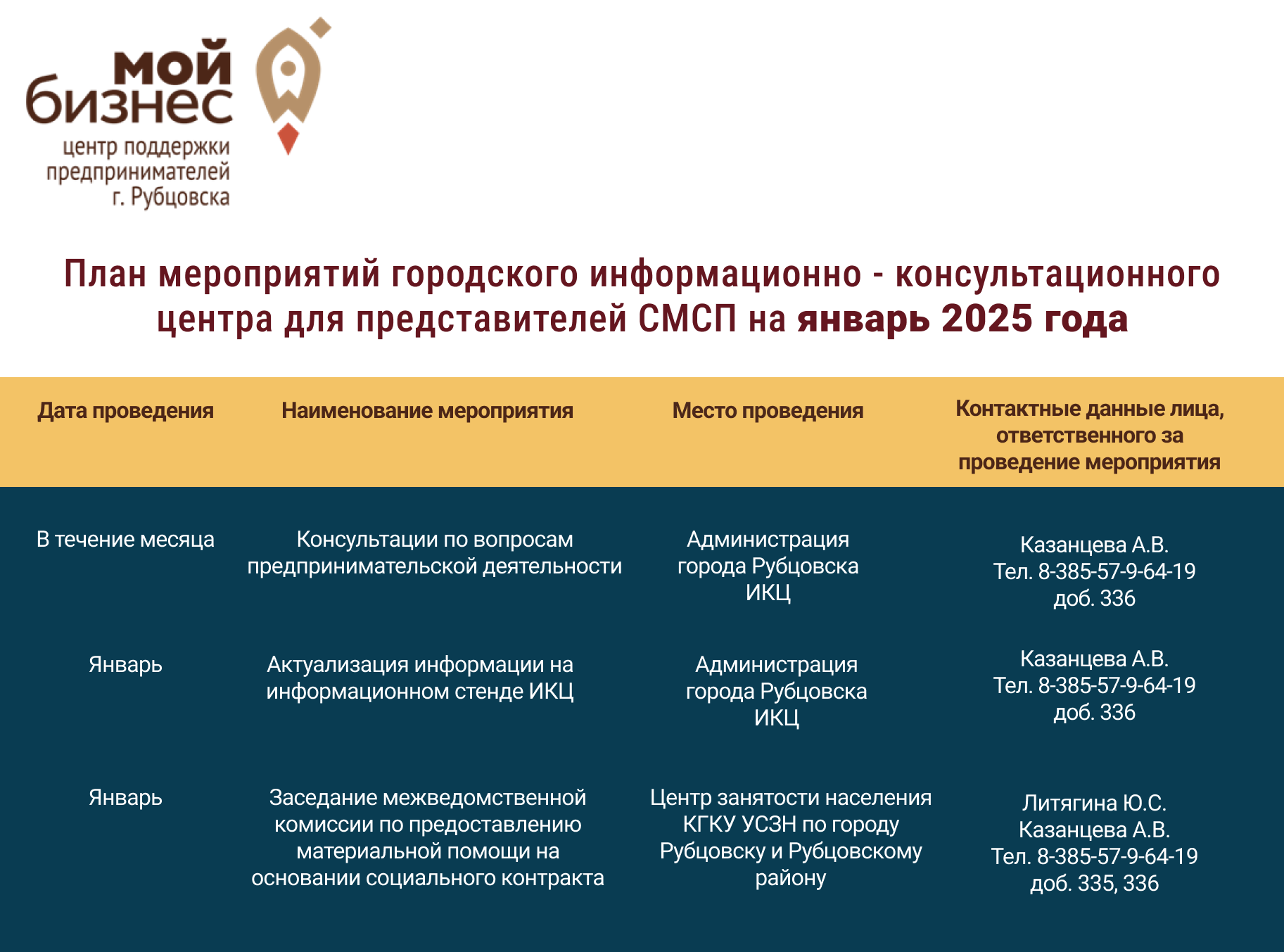 Страница отдела по развитию предпринимательства и рыночной инфраструктуры на сайте Администрации города Рубцовска