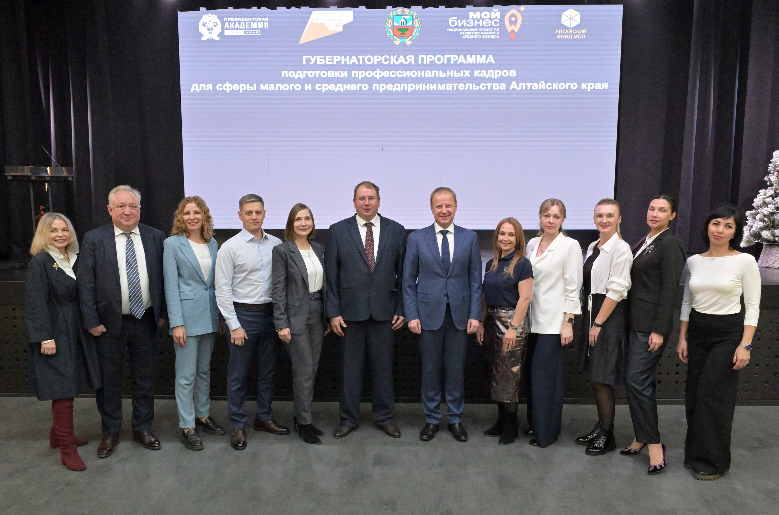 Торжественное награждение слушателей Губернаторской программы подготовки профессиональных кадров для сферы малого и среднего предпринимательства Алтайского края 2024 года прошло в Алтайском филиале РАНХиГС. Губернатор Виктор Томенко поздравил выпускников с успешным завершением проекта, а 10 лучшим из них - вручил сертификаты. В 2024 году обучение прошло 150 человек, в их числе индивидуальные предприниматели, руководители и сотрудники крупных предприятий. Образовательный процесс был подготовлен для двух групп с разным количеством часов и изучаемых тем.