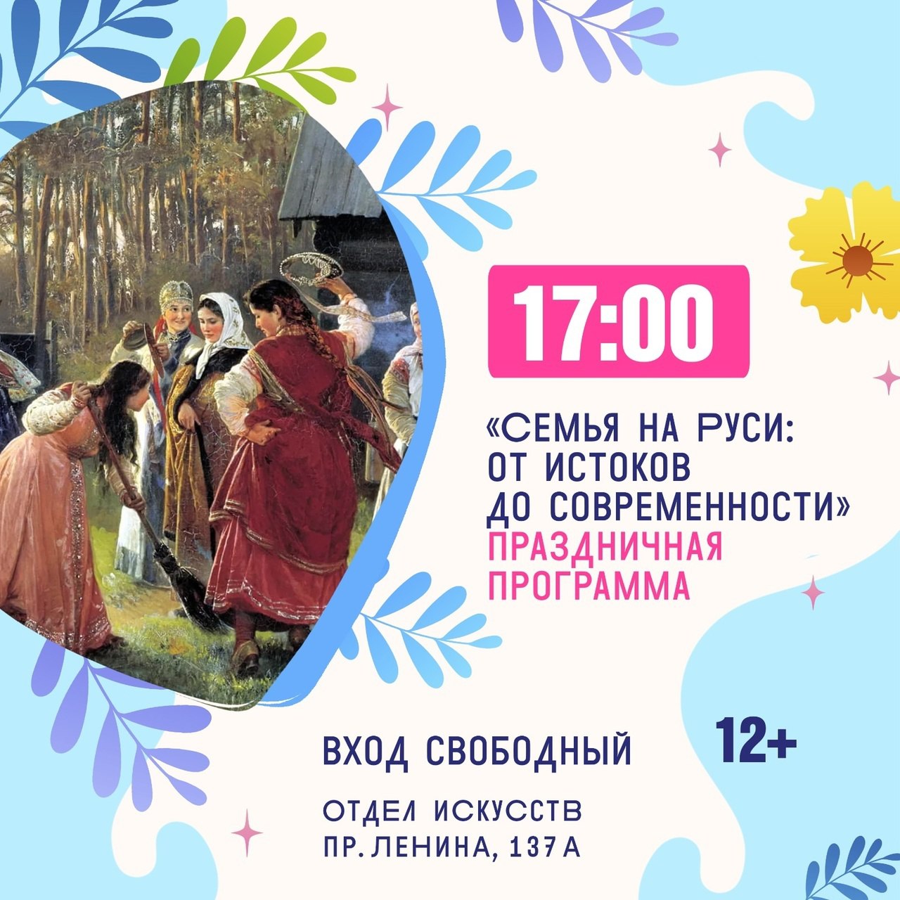 17:00 – Праздничная программа «Семья на Руси: от истоков до современности». Гости погрузятся в историю русской семьи: от традиционных обычаев и семейных связей до суеверий и поверий.
