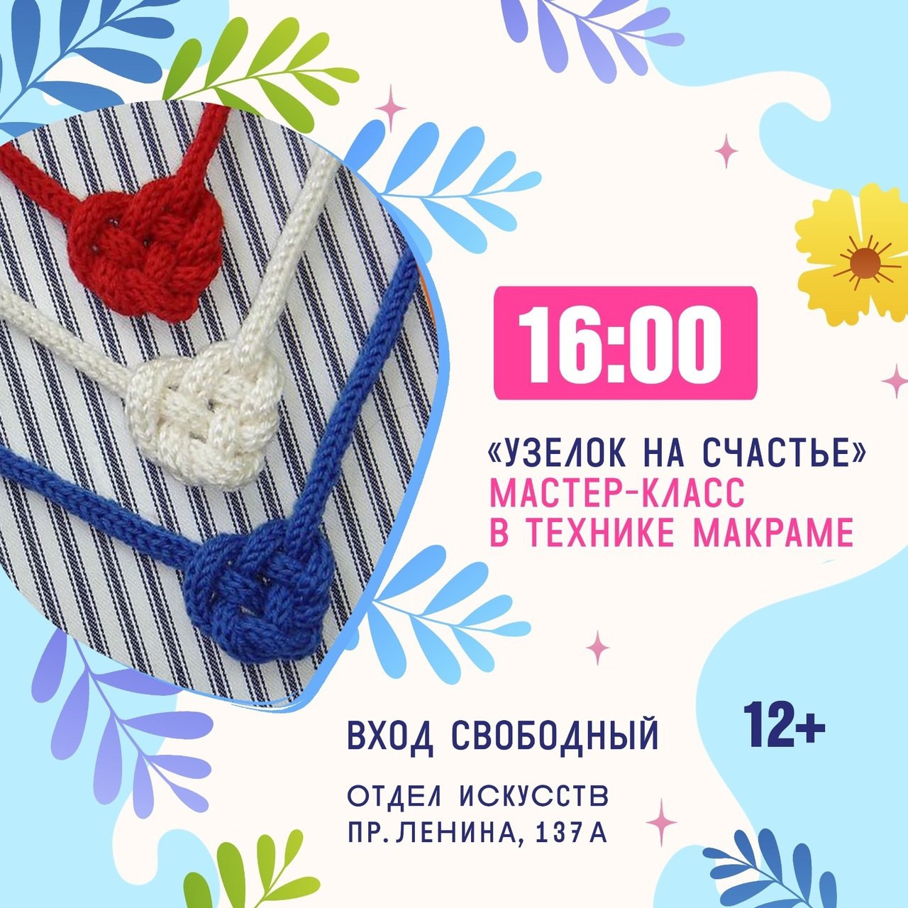 16:00 – Мастер-класс по макраме «Узелок на счастье». Участники освоят основы древнего искусства узелкового плетения и создадут собственный талисман в виде браслета или брелока.