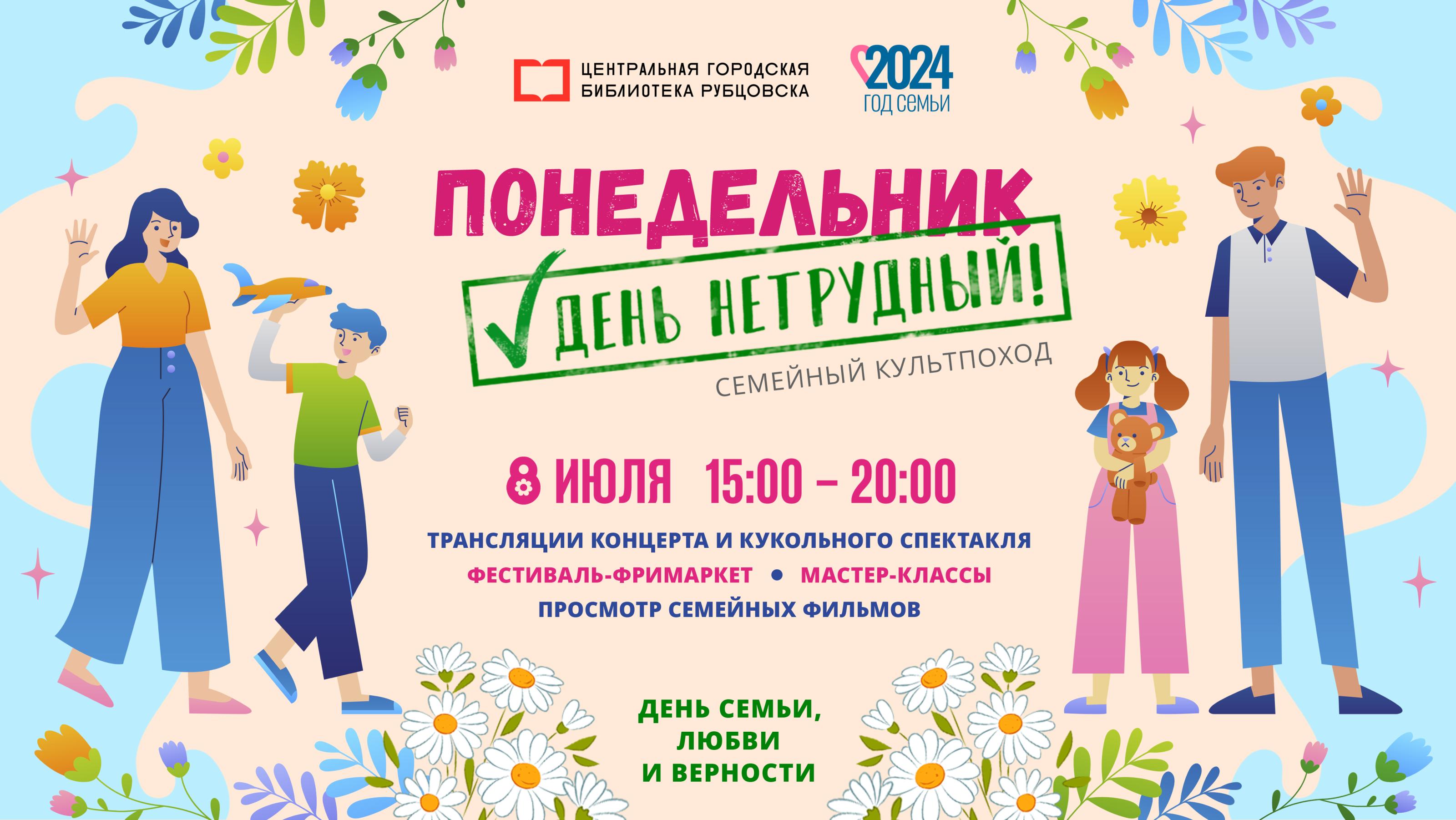 8 июля Центральная городская библиотека приглашает рубцовчан отметить День семьи, любви и верности семейным культпоходом.