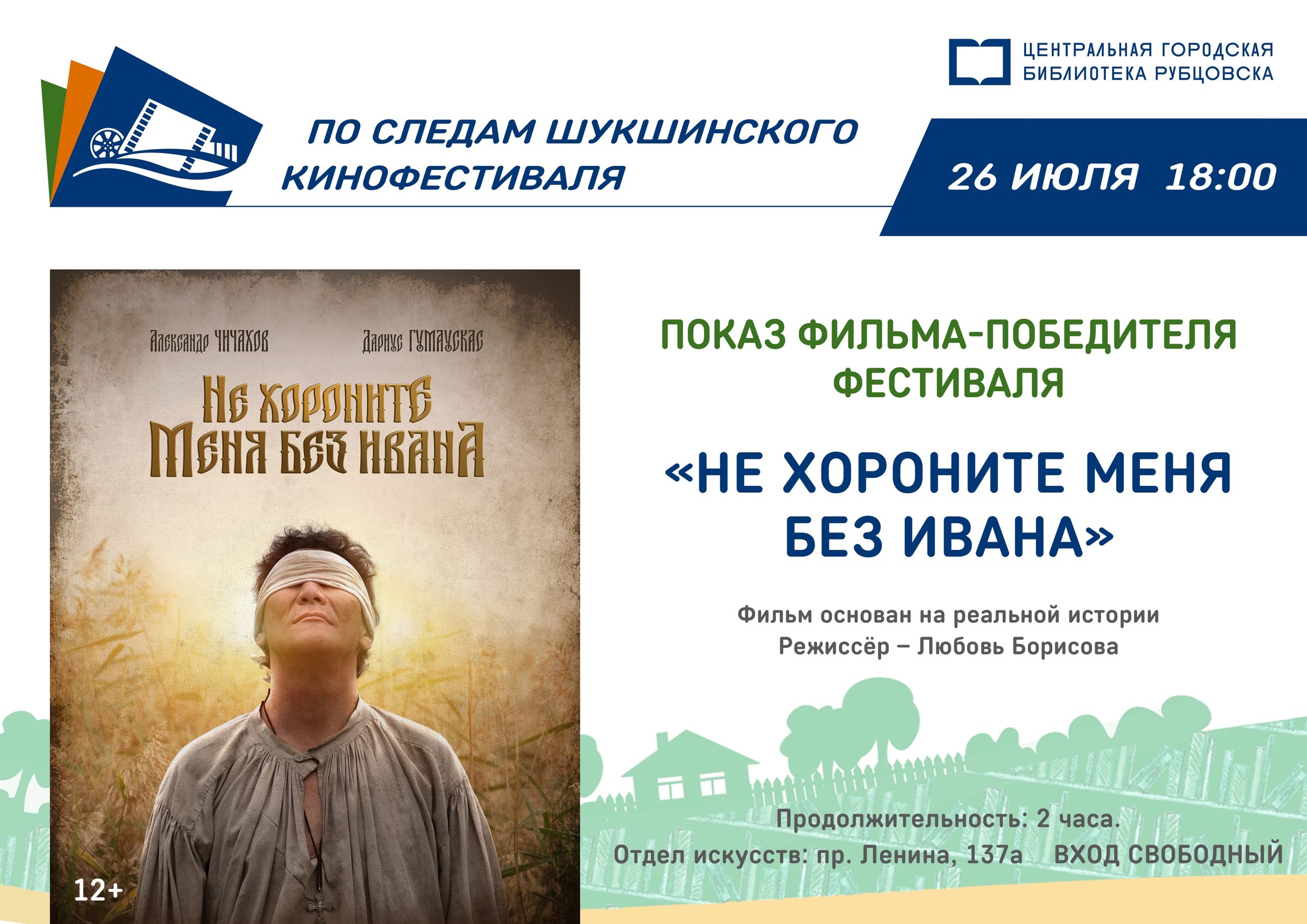 Сегодня, 26 июля, в 18.00 в киноклубе #Киновместе состоится показ фильма-победителя фестиваля «Не хороните меня без Ивана», основанный на реальной истории.
