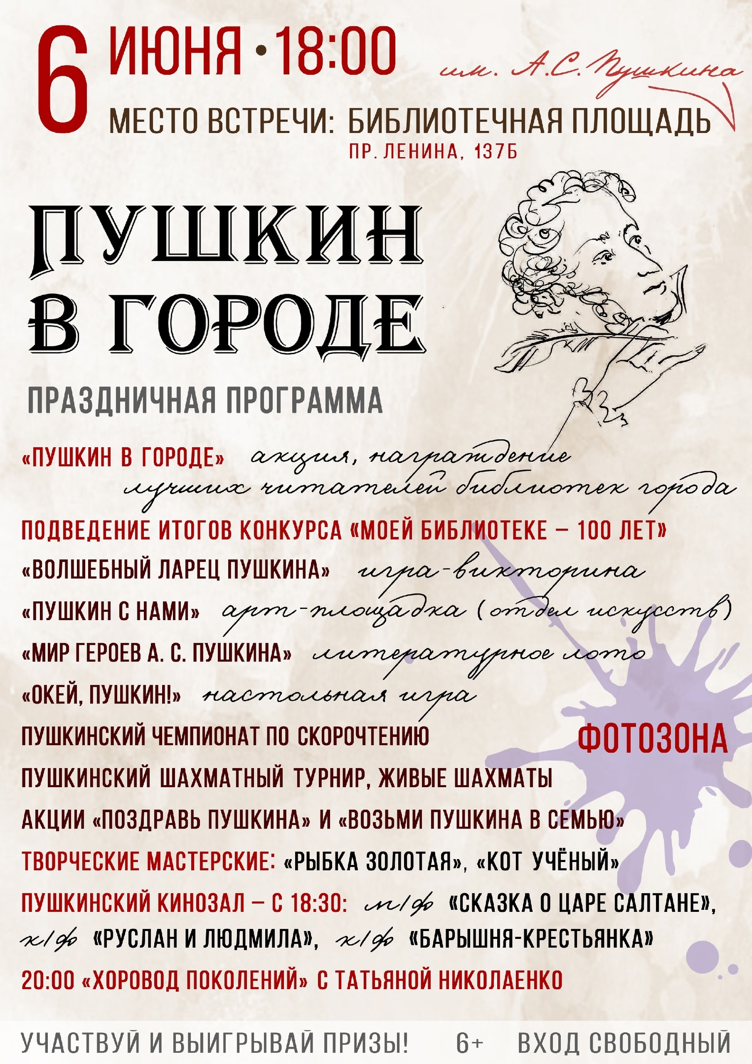 По традиции в этот день библиотеки чествуют своих самых активных читателей и приглашают всех любителей поэзии, литературы, истории и просто почитателей гения великого русского поэта стать участниками: