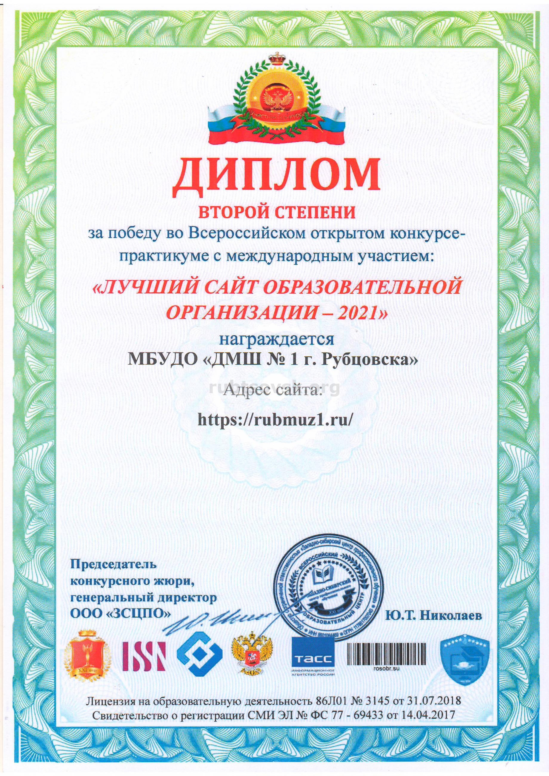 Современные условия жизни диктуют свои законы, и на одно из первых мест в деятельности любой организации выходит информационная работа. Детская музыкальная школа № 1 г. Рубцовска приняла участие во Всероссийском открытом конкурсе-практикуме с международным участием «Лучший сайт образовательной организации - 2021».