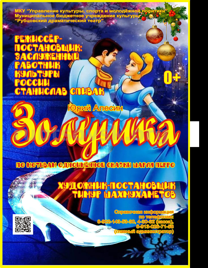 В канун уходящего 2020 года Рубцовский драматический театр для юных рубцовчан подготовил новогодний подарок в виде премьеры музыкальной сказки по пьесе Ю.Алесина «Золушка», в постановке Заслуженного работника культуры РФ Станислава Федоровича Спивака.