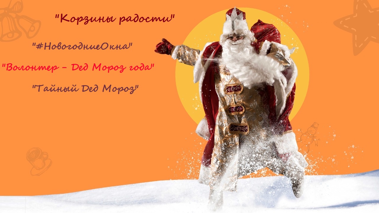Акция «Корзины радости»: видоизменённая версия проекта «Тележка добра»: покупатели приобретают новогодние товары, сладкие подарки и продукты, безвозмездно отдают их в «корзины», стоящие в магазинах крупных торговых сетей, для дальнейших адресных поздравлений детей и нуждающихся граждан региональным штабом акции. Организаторы акции - Общероссийский народный фронт.