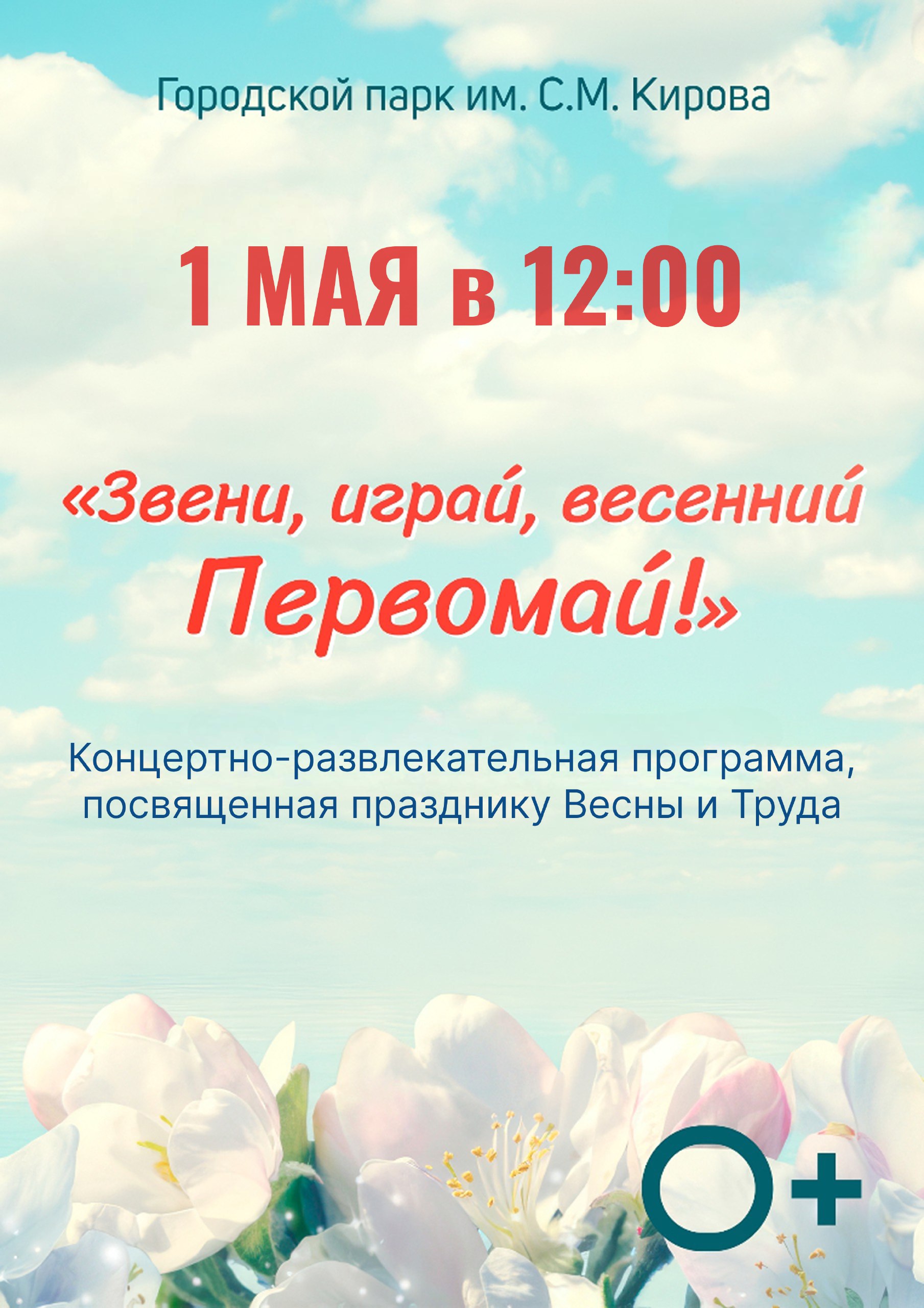 1 мая в 12:00 в городском парке им. С.М. Кирова состоится концертно-развлекательная программа, посвящённая празднику Весны и Труда. В этот день вы сможете насладиться талантливыми выступлениями творческих коллективов нашего города, которые подарят вам незабываемые эмоции и заряд положительной энергии.