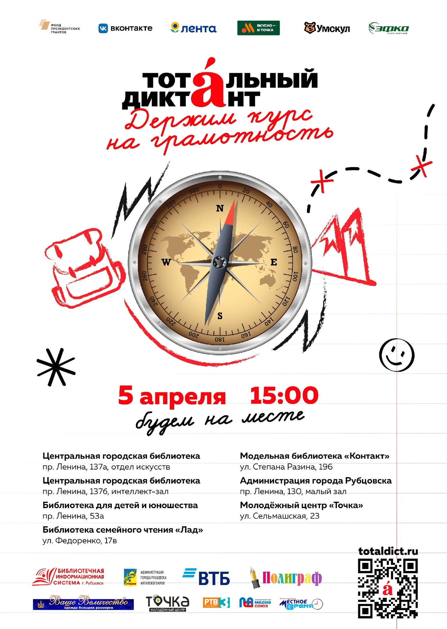 5 апреля жители 50 стран мира напишут Тотальный диктант. На территории России к акции присоединятся более 900 населенных пунктов, в том числе и Рубцовск. В этом году акция в нашем городе пройдет в 14-й раз. В прошлом году более 300 рубцовчан написали Тотальный диктант.