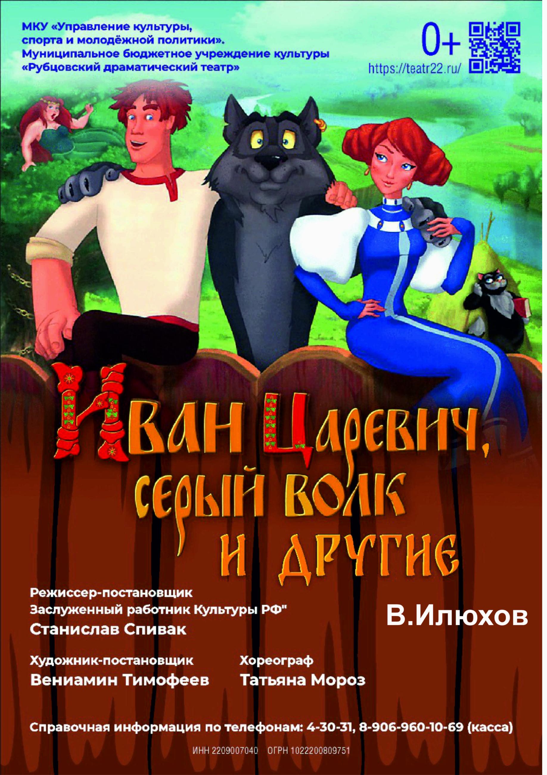 Новый музыкальный спектакль для семейного просмотра «Лукоморье или Иван Царевич, Серый волк и другие» по пьесе Владимира Илюхова представит рубцовский драматический театр уже 30 марта. Режиссер спектакля – Заслуженный работник культуры РФ Станислав Спивак.