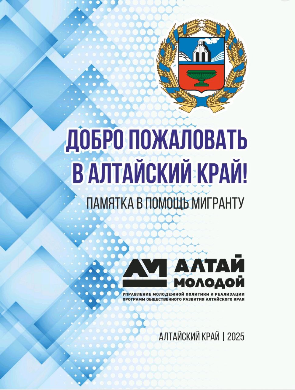 Управлением молодежной политики и реализации программ общественного развития Алтайского края совместно с департаментом Администрации Губернатора и Правительства Алтайского края по взаимодействию с федеральными органами государственной власти разработана памятка для иностранных граждан «Добро пожаловать в Алтайский край!».