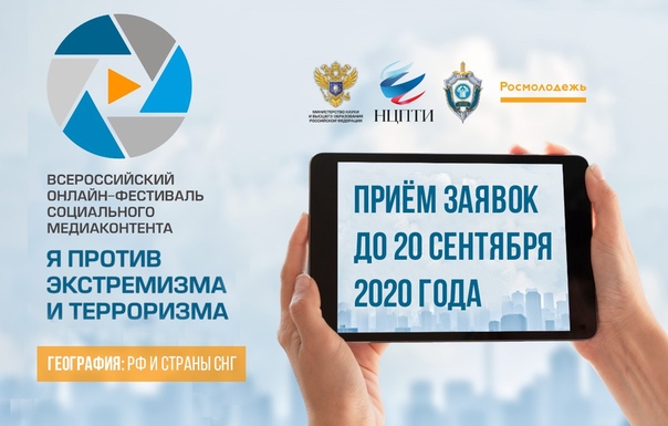 Департамент государственной молодежной политики и социальных проектов в сфере высшего образования Минобрнауки РФ информирует, что Национальный центр информационного противодействия терроризму и экстремизму в образовательной среде и сети Интернет при поддержке Минобрнауки России в период с 23 сентября по 30 октября 2019 г. проводит Всероссийский онлайн-фестиваль социального медиаконтента «Я против экстремизма и терроризма». Данный фестиваль будет направлен на вовлечение молодёжи в общественно значимую деятельность по профилактике терроризма и экстремизма.