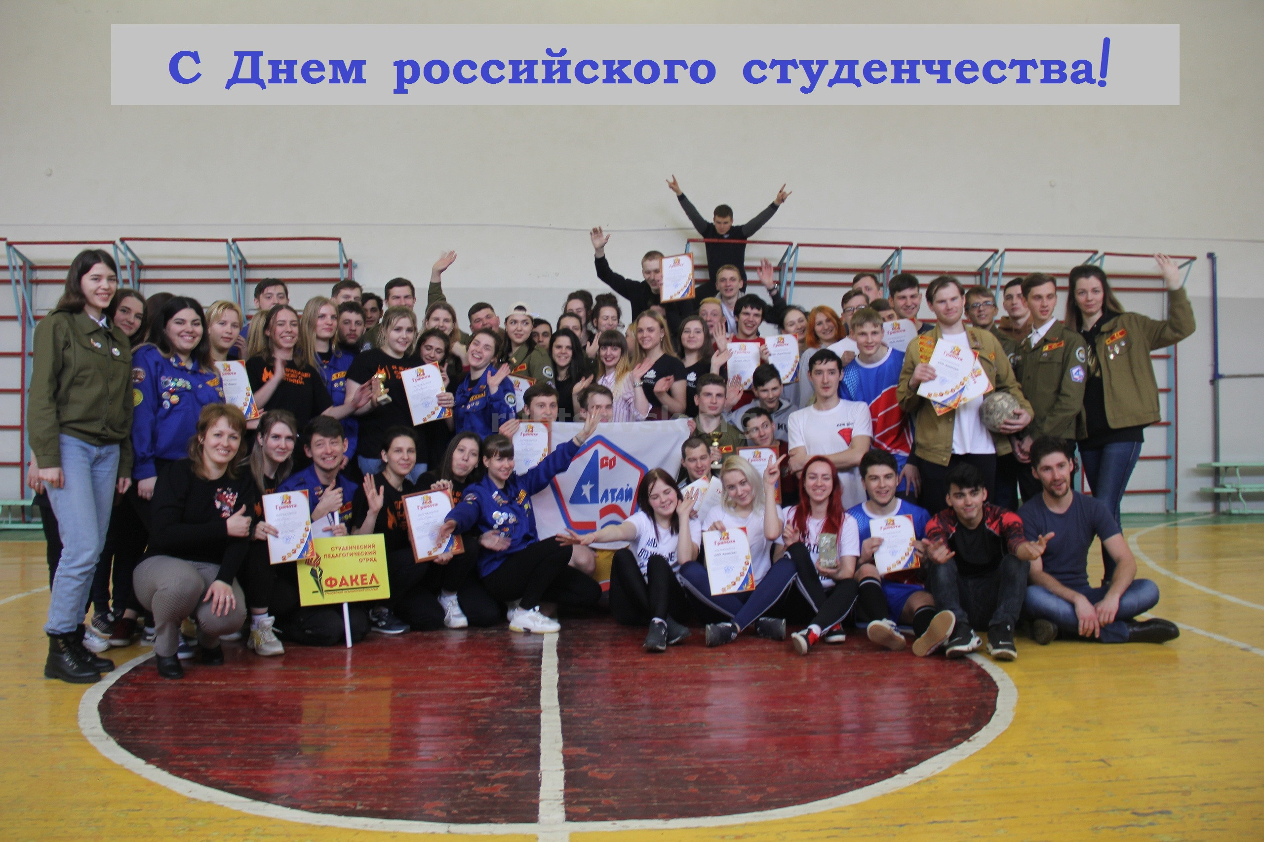 В рамках празднования в Рубцовске в сквере Комсомольской славы состоялось торжественное построение студентов, причастных к этому яркому молодежному движению.