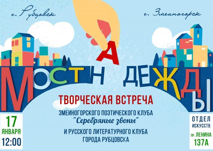 17 января в Центральной библиотеке состоится творческая встреча «Мост Надежды», сообщает "Местное время". На мероприятии выступят со своими произведениями поэты змеиногорского поэтического клуба «Серебряные звоны» и русского литературного клуба Рубцовска. На протяжении многих лет два города связывают творческие контакты, рассказали в управлении культуры, спорта и молодежной политики. Между коллективами завязалась крепкая дружба, и сложилась добрая традиция ездить друг к другу в гости. Инициатором поездок является член змеиногорского поэтического клуба и русского литературного клуба Надежда Рукина.