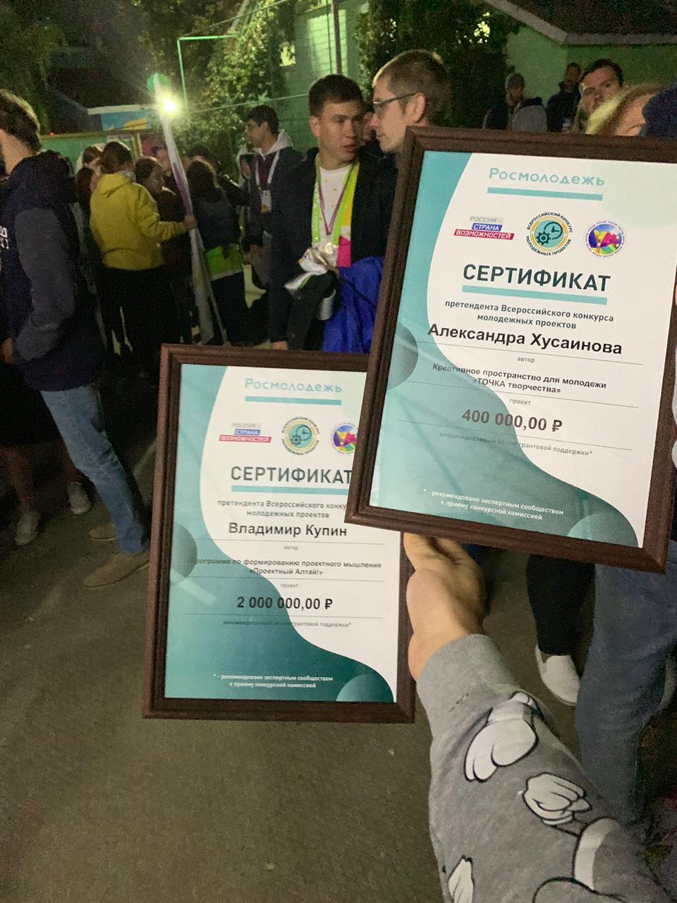 Директор социально – ориентированной общественной организации «Центр поддержки и развития общественных инициатив» «Сфера», победитель краевого конкурса «Молодой предприниматель Алтая», участник Всероссийского конкурса «Молодой предприниматель России-2018» Владимир Купин на прошедшем в сентябре в Ростовской области молодежном форуме «Ростов» стал обладателем гранта в сумме 2 млн. рублей. В рамках форума проходил грантовый конкурс молодежных инициатив Федерального агентства по делам молодежи, где участники смогли получить грантовую поддержку на реализацию социально значимых проектов.
